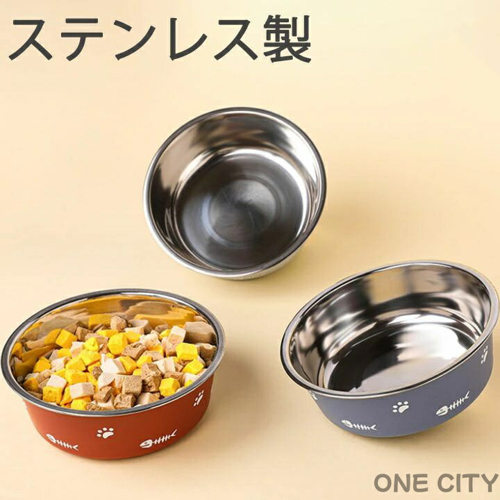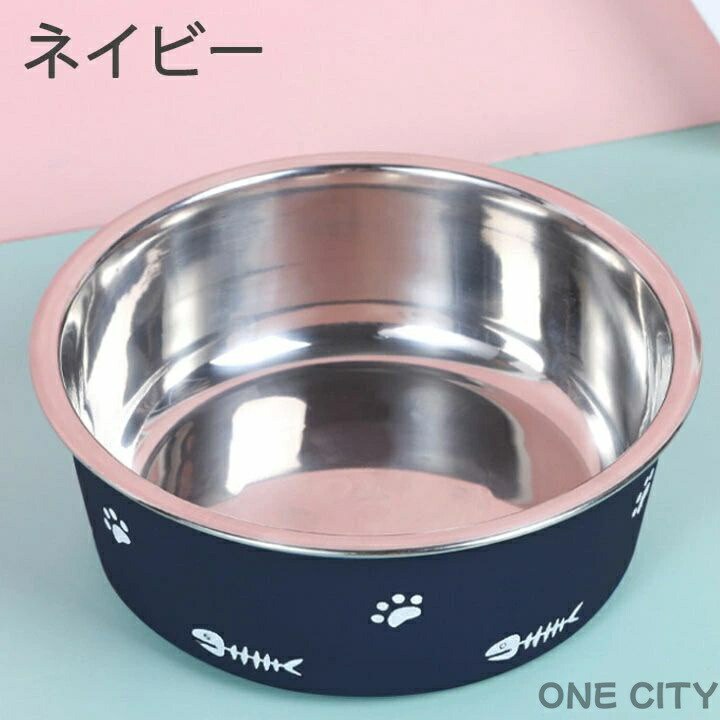 ペットボウル ステンレス 犬 猫 食器 ネイビー ブラウン ブルー S M L