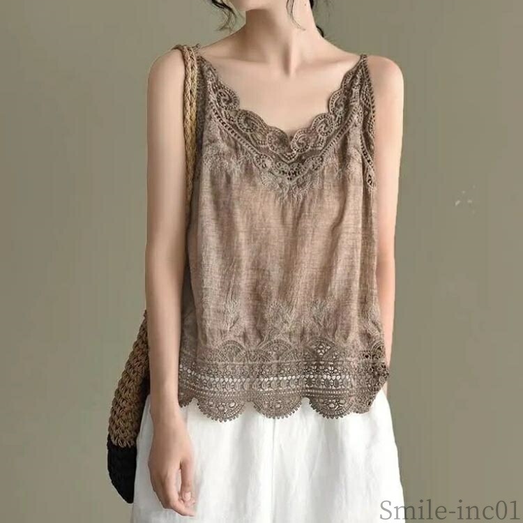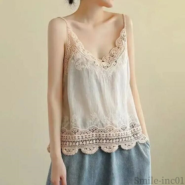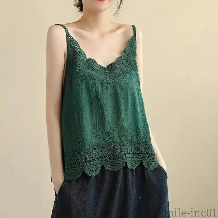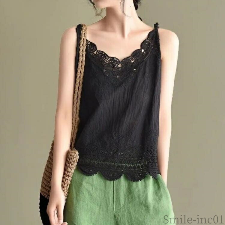 Vネッ 裾レース レディース インナー トップス キャミソール 通販 アイボリー ブラック コーヒー グリーン 桃ピンク 薄いピンク イエロー