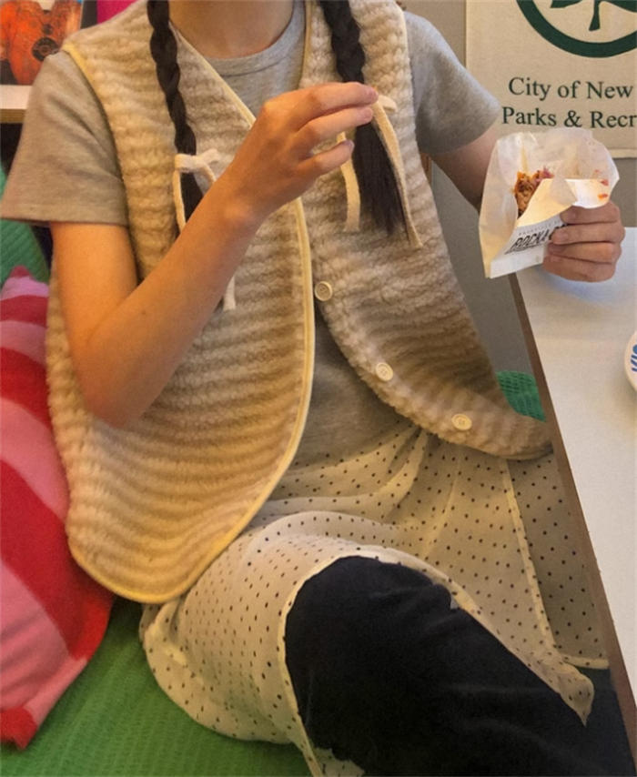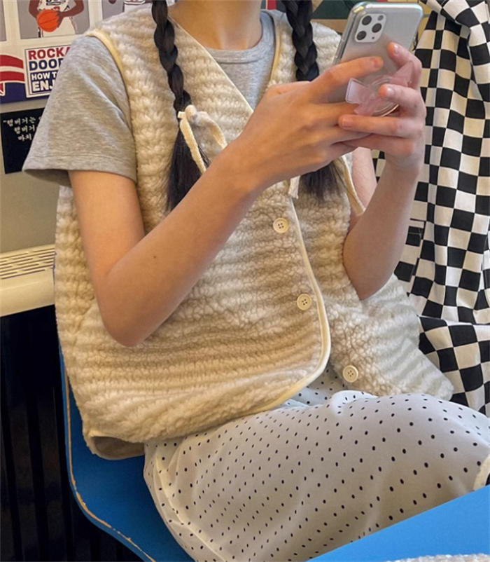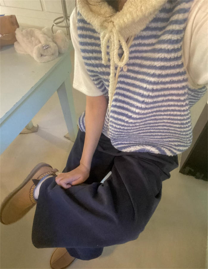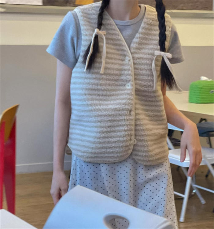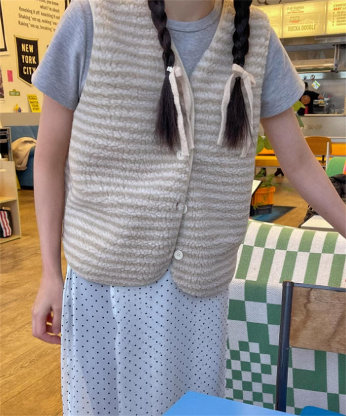 ボア ジレ 前開き ベスト ノーカラー トップス ベスト 豊富な品揃え ブルー ベージュ