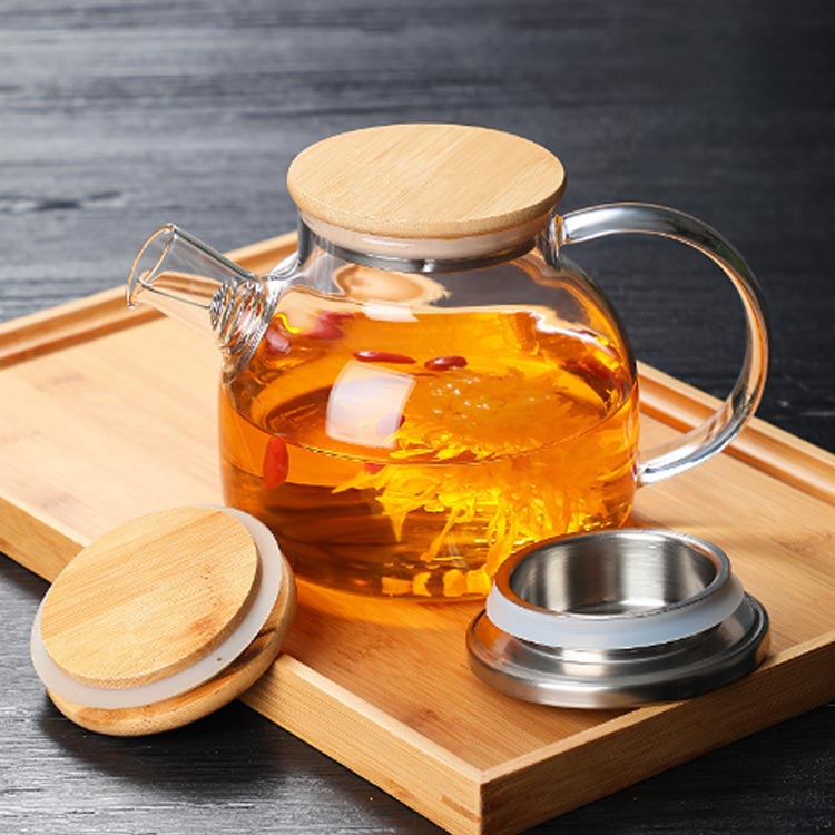 ティーポット 耐熱ガラス 1000ml コーヒー お茶用品 ティーポット 通販 ステンレス+竹蓋 全ステンレス蓋 全竹蓋 1000ml 1800ml