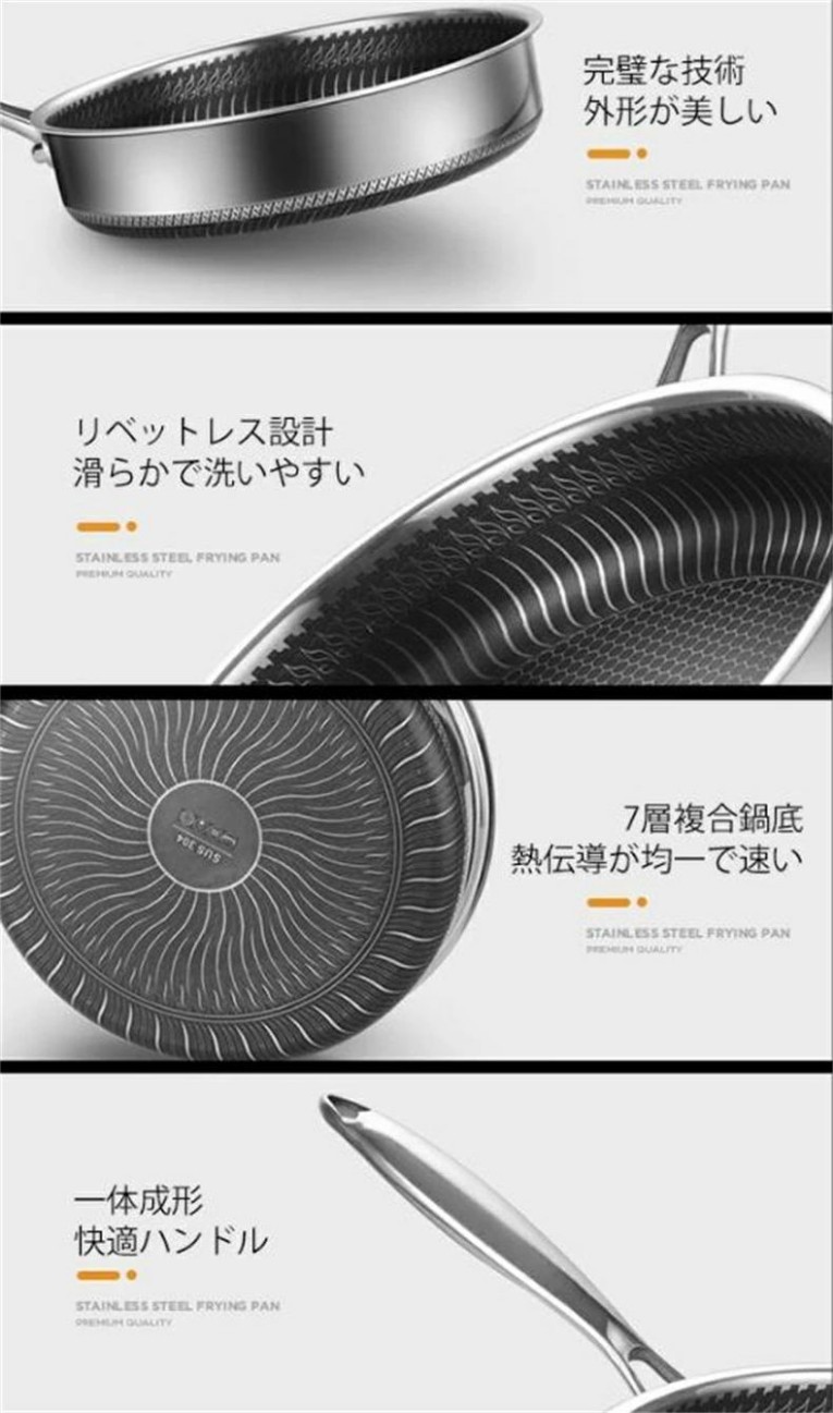焦げ付き防止304ステンレス鋼フライパ