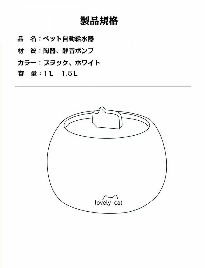 自動給水器 水飲み器 水飲み 陶器皿 ブラック ホワイト フィルターのみ(2個セット) 1L 1.5L