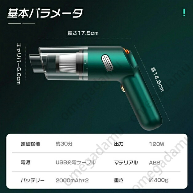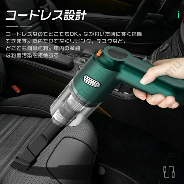 車内掃除機 掃除機 車 コードレス 車 ブラック ホワイト グリーン