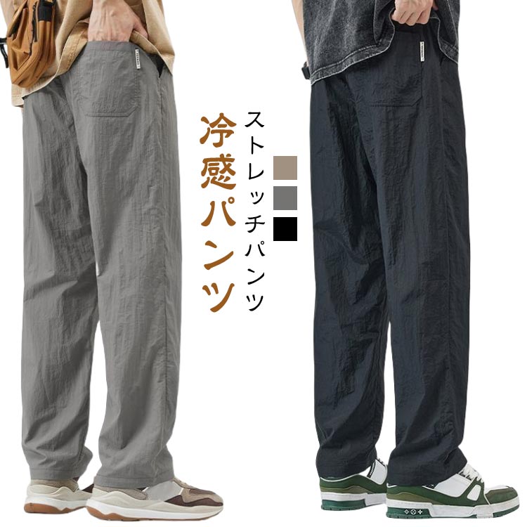 ワイドパンツ メンズ アイスシルクパン メンズファッション 新登場! ブラック グレー ベージュ M L XL 2XL 3XL