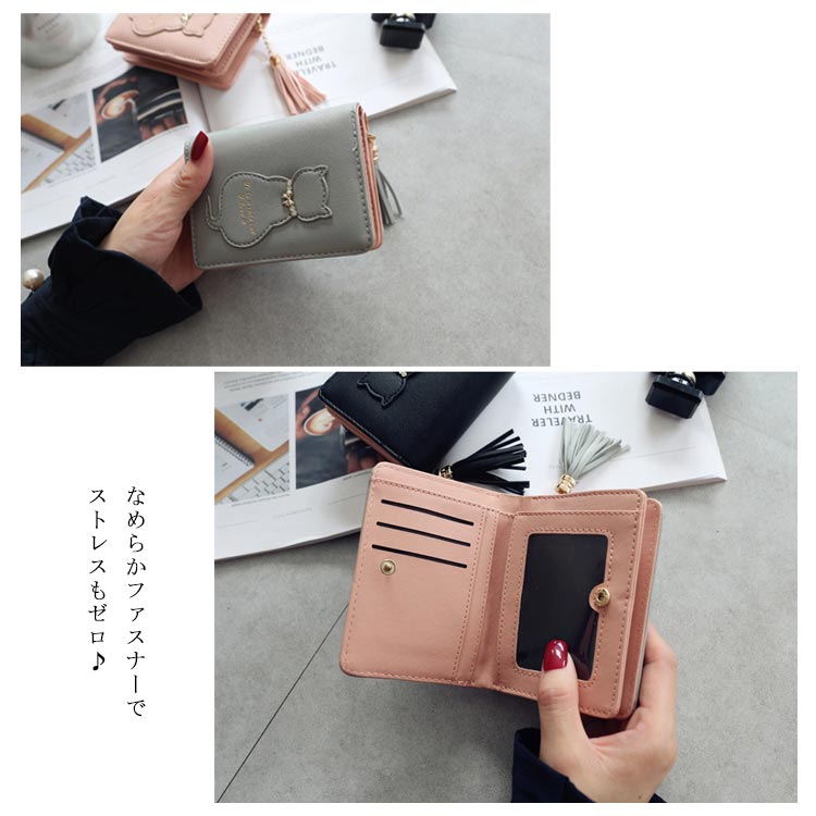 二つ折り 多機能 卒業祝い おしゃれ キッズ 財布 コインケース 新作 ピンク ダークピンク ブラック グレー