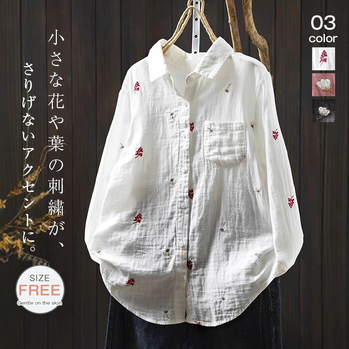 シャツ ブラウス 綿 コットン ガーゼ レディースファッション 新登場! ホワイト ピンク ダークグレー