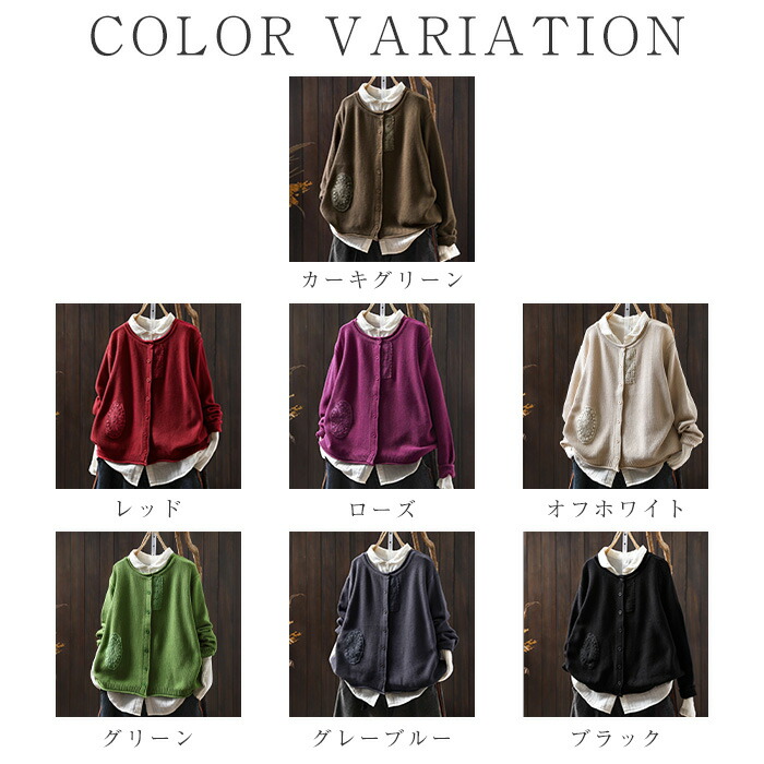 ニットカーディガン レディース ニット レディースファッション 続々入荷中 カーキグリーン レッド ローズ オフホワイト グリーン グレーブルー ブラック
