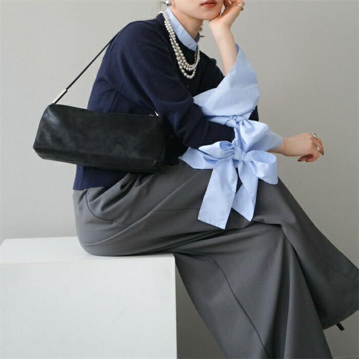 シアースリーブ ドッキングシャツ ボウタイシャツブラウス