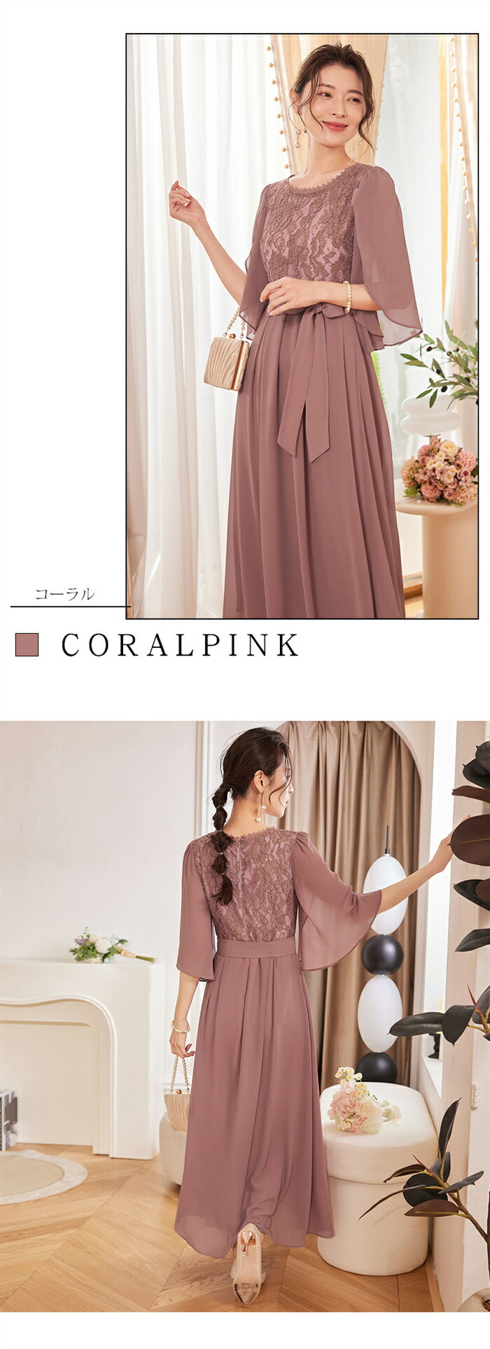 ワンピース ドレス 結婚式 レディース レディースファッション 超目玉商品 コーラル グレーブラウン ダークグレー ダークブルー ネイビー S M L XL 2XL