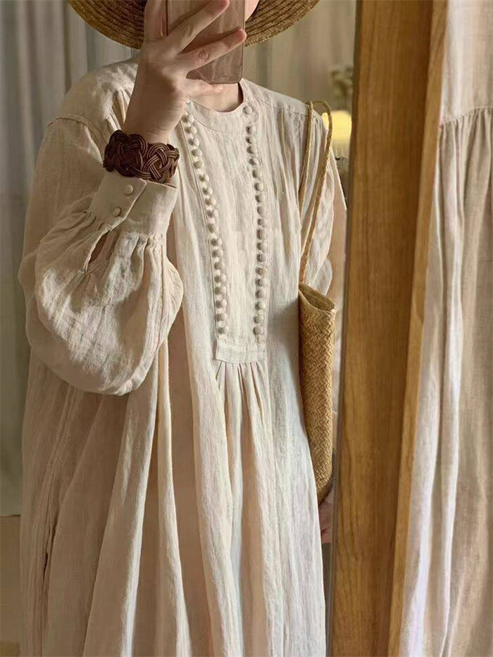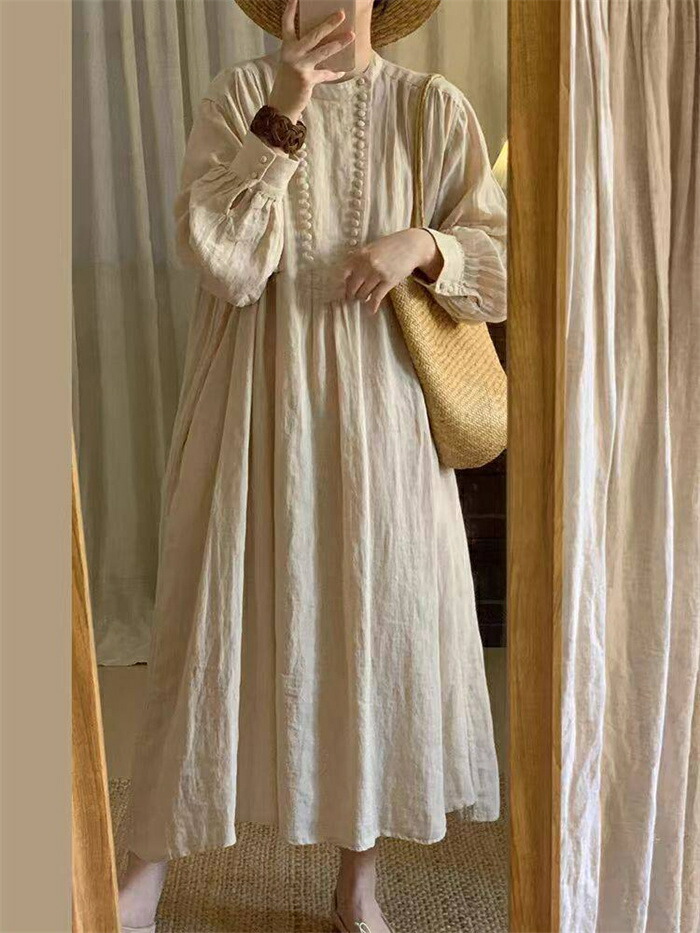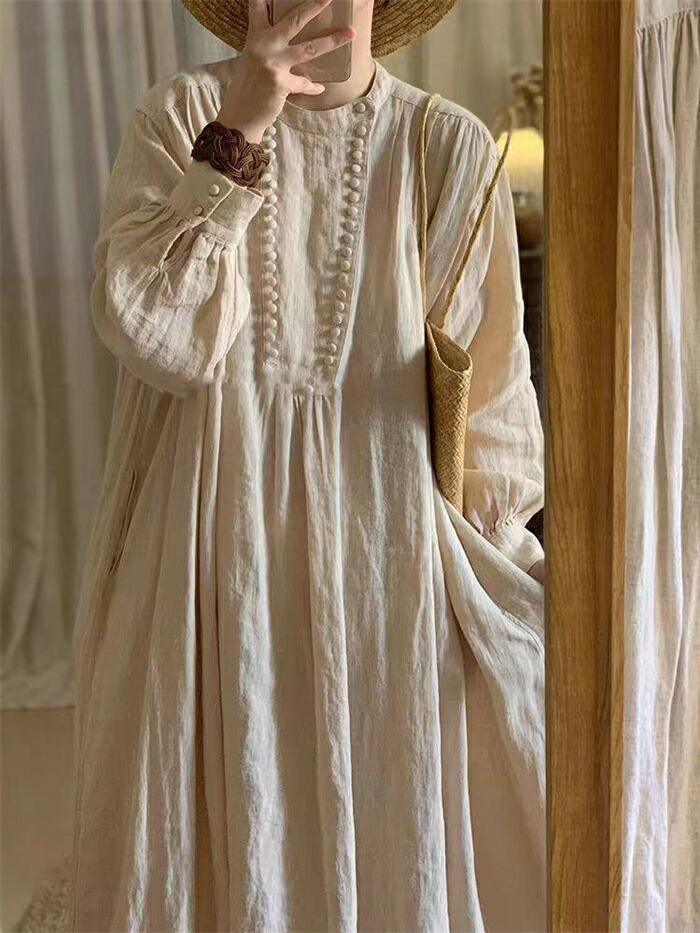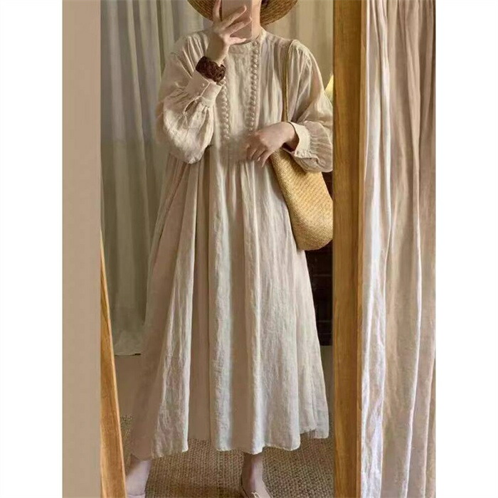 ワンピース ロング 綿麻調 レディース レディースファッション 新登場! M L XL 2XL