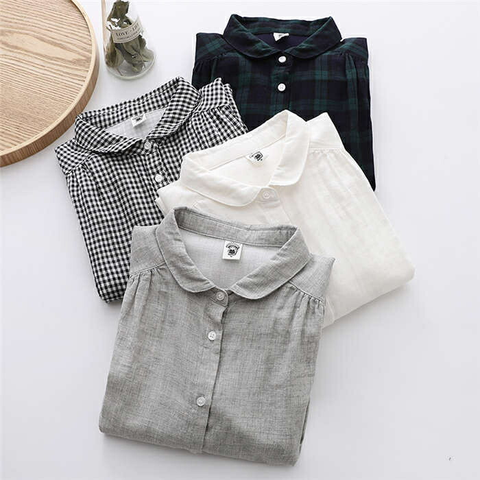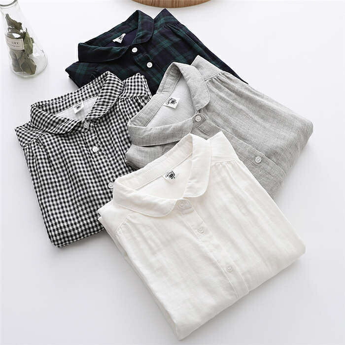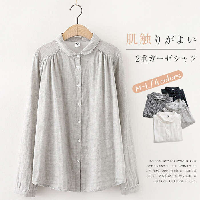 シャツブラウス 綿100% レディース レディースファッション 新登場! 白 グレー 黒白小さめチェック 緑黒大きめチェック M L