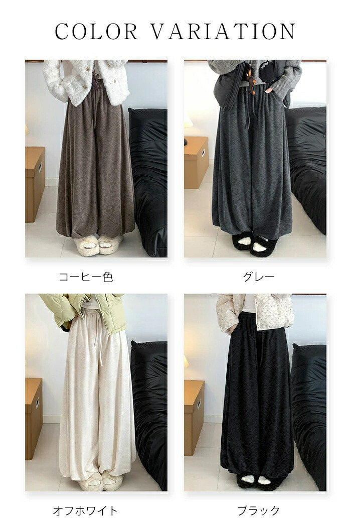 裏起毛 バルーンパンツ レディース 裏 ボトムス パンツ 新登場! コーヒー色 グレー オフホワイト ブラック S M L