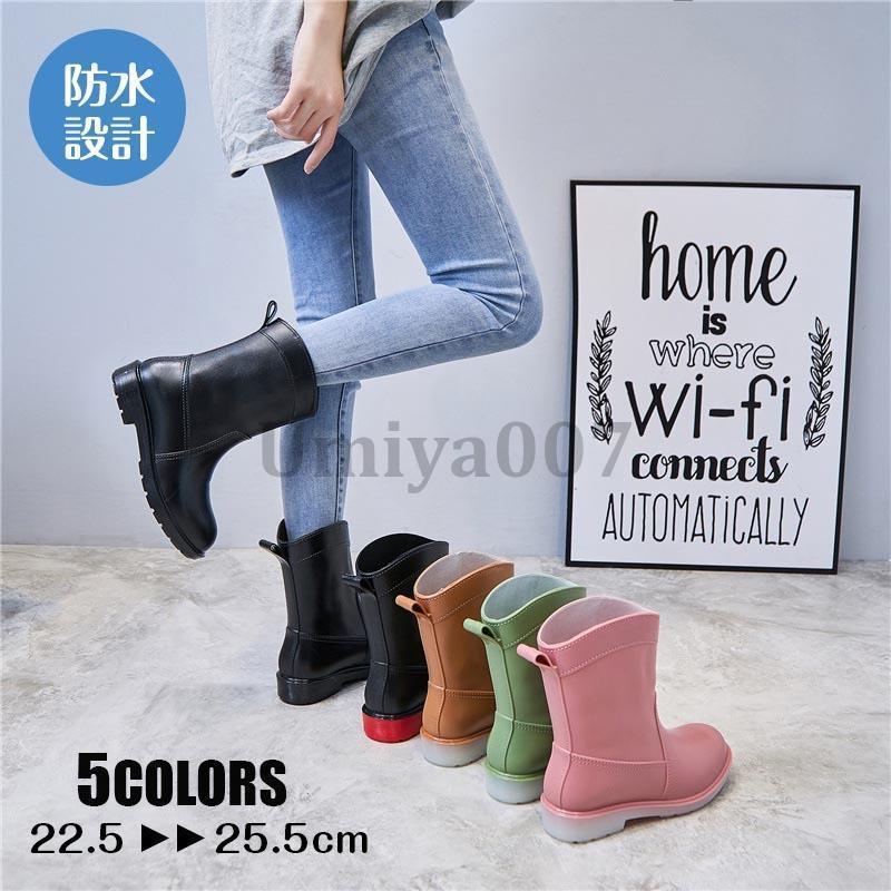 防水レインブーツ レディース レインシ 靴 新作 カーキ ブラック グリーン ピンク 22.5cm 23cm 23.5cm 24cm 24.5cm 25cm 25.5cm