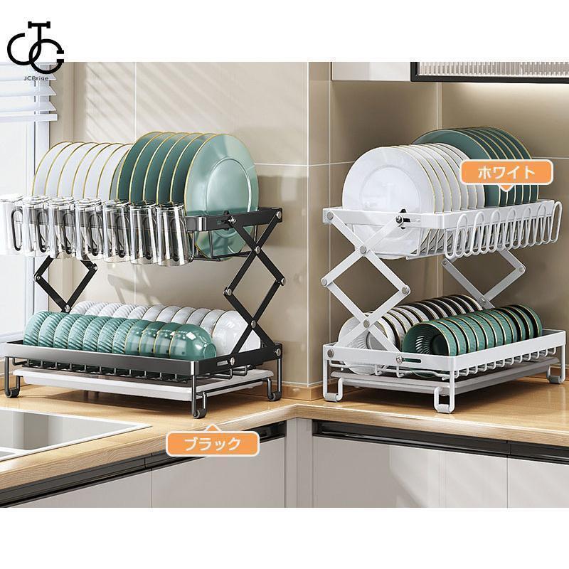 水切りラック 2段 ステンレス 大容量 キッチン整理用品 水切りラック 続々登場 ブラック ホワイト マット(50*80cm)