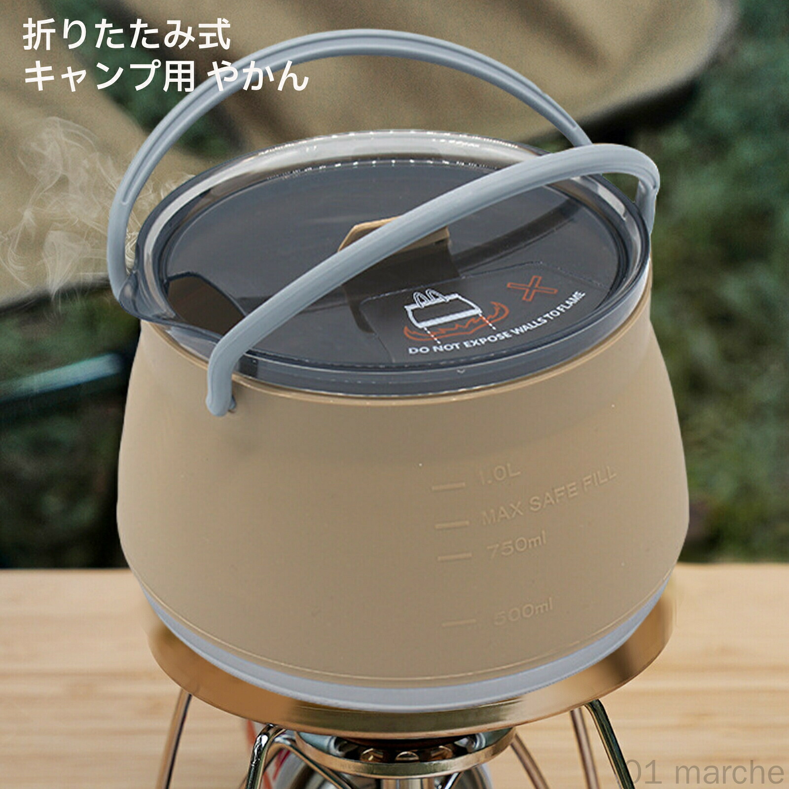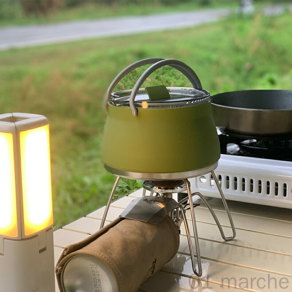 キャンプ用やかん 折り畳み式やかん ウ グリーン カーキ