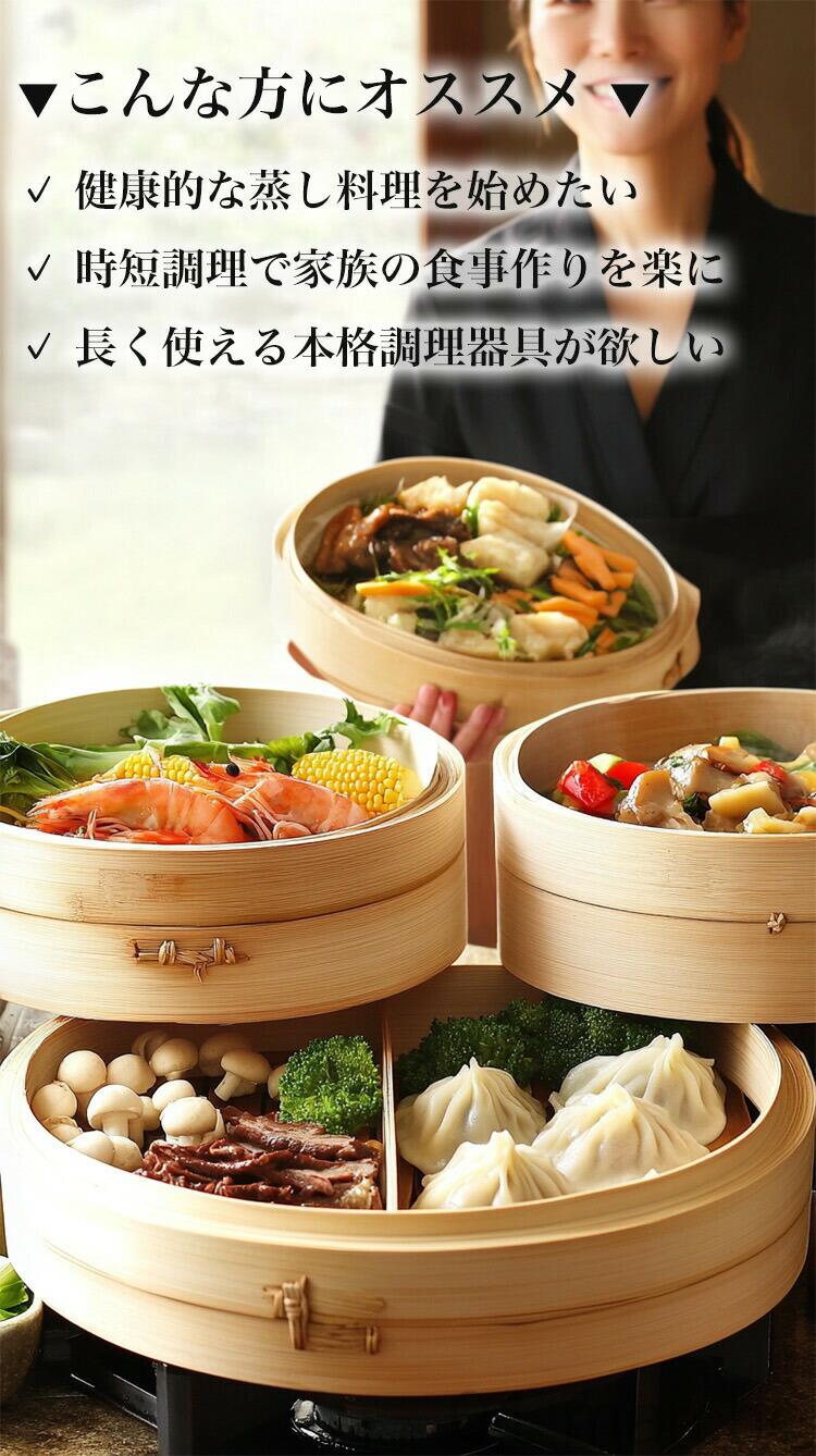 せいろ 竹 せいろ蒸し器 一式セット キッチン用品 食器 調理器具 続々登場 21cm本体×2+蓋×1 24cm本体×2+蓋×1 27cm本体×2+蓋×1 蒸し板追加なし 蒸し板22cm(鍋内径20cm用) 蒸し板26cm(鍋内径24cm用) 蒸し板30cm(鍋内径27cm用) 蒸し板32cm(鍋内径30cm用) 蒸し板35.5cm(鍋内径34cm用)