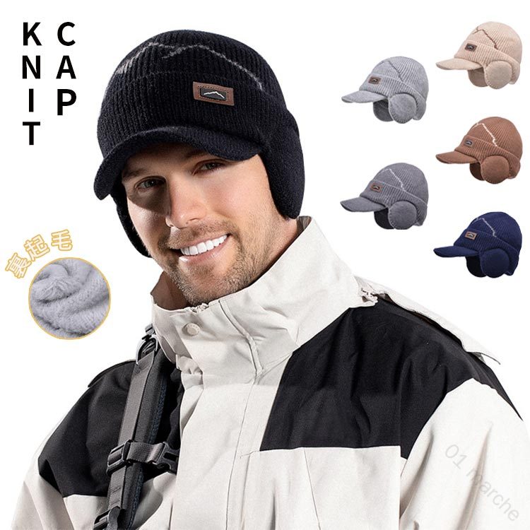 メンズ 冬 暖かい 耳あて つば ニッ バッグ 小物 ブランド雑貨 人気 ブラウン グレー ブラック ダークグレー ベージュ ネイビー