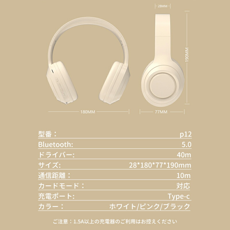 ワイヤレスヘッドホン Bluetoot ホワイト ピンク ブラック
