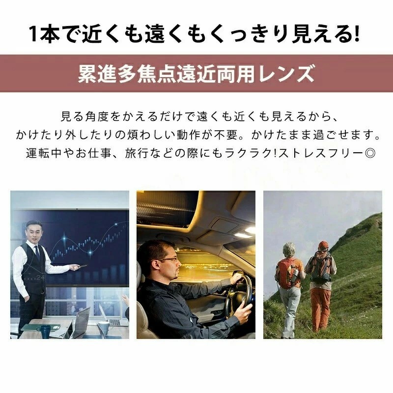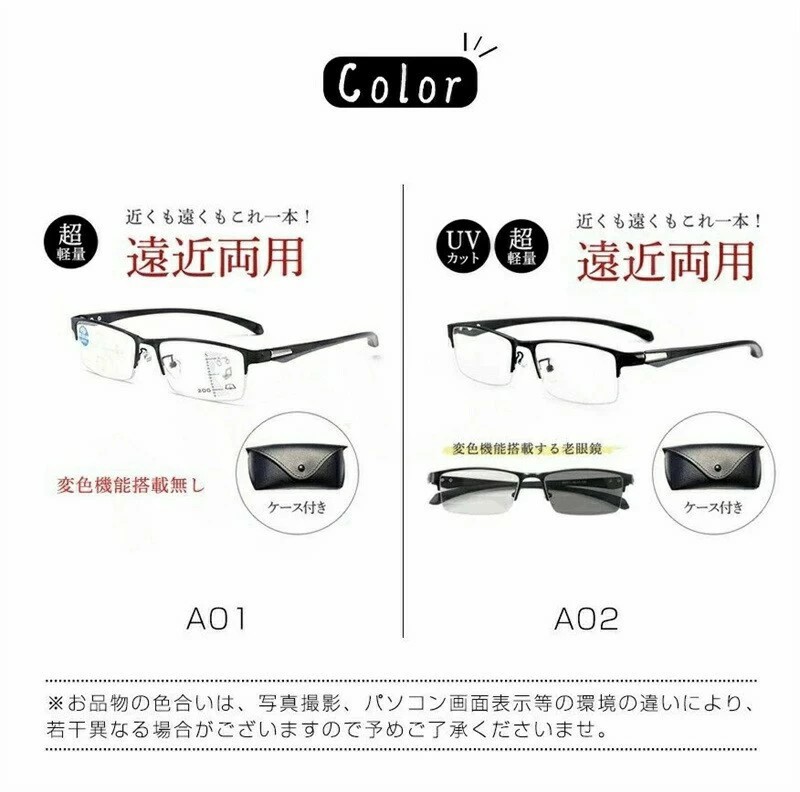 遠近両用メガネ 老眼鏡 ブルーライトカ バッグ 小物 ブランド雑貨 通販 A01(変色機能無し、ケース無し) A02(変色機能搭載、ケース付き) +1.0(100度) +1.5(150度) +2.0(200度) +2.5(250度) +3.0(300度) +3.5(350度) +4.0(400度)