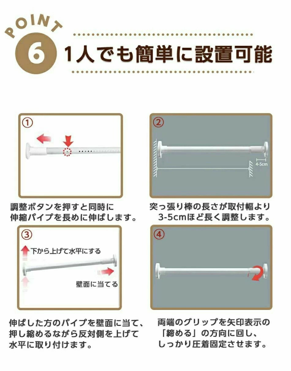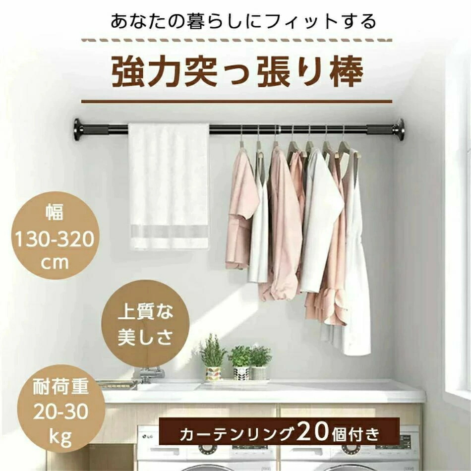 突っ張り棒 強力 320cm つっぱり ホワイト ブラック