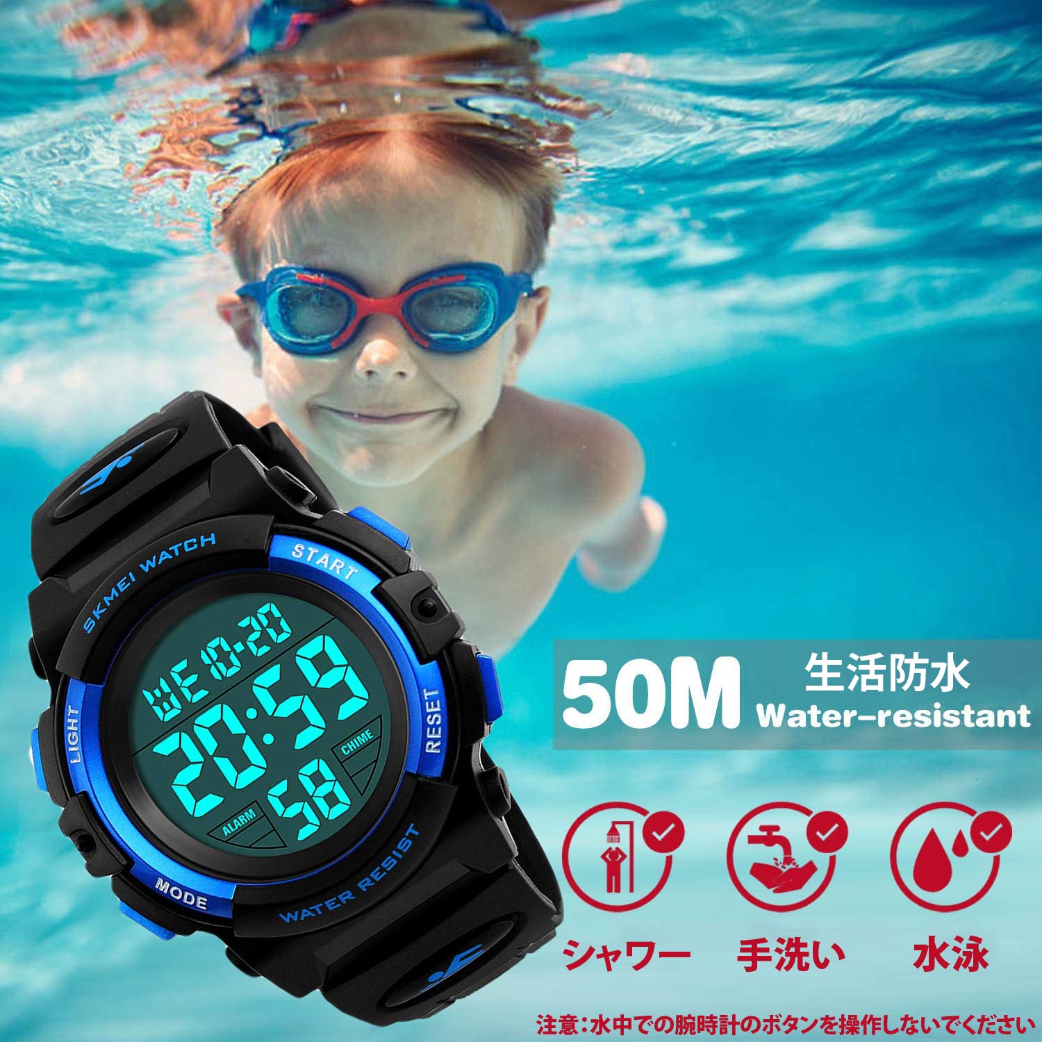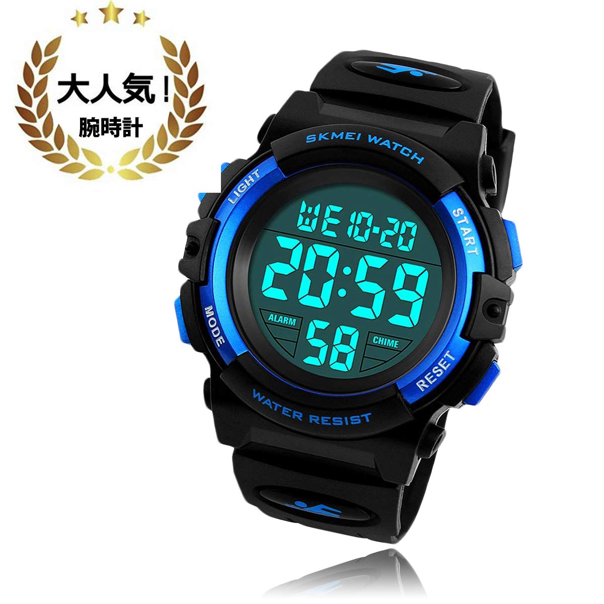 腕時計 キッズ デジタル腕時計 子供用 ブルー ゴールド