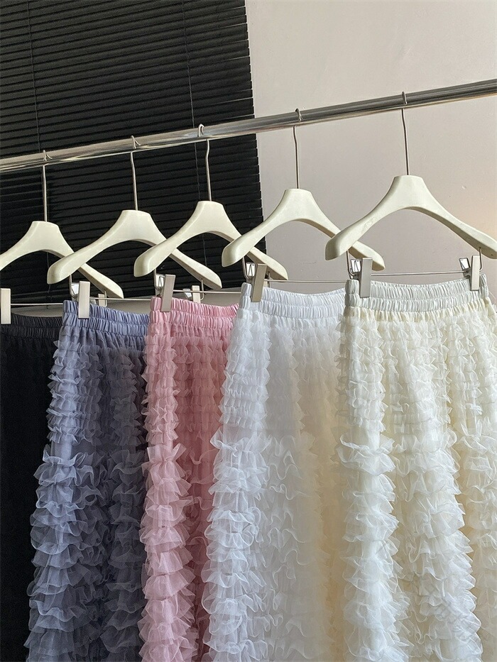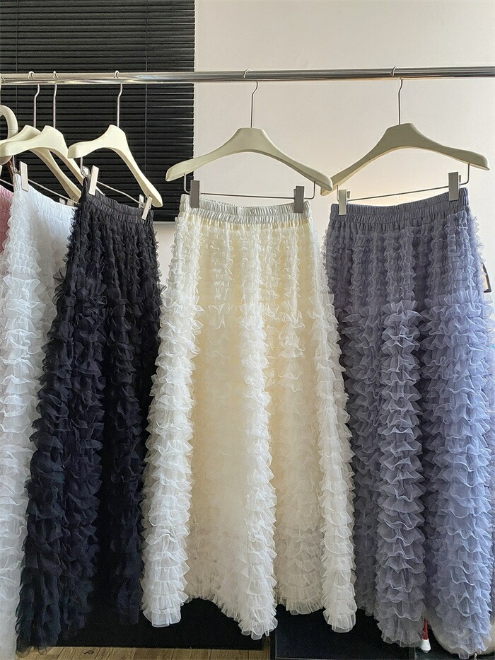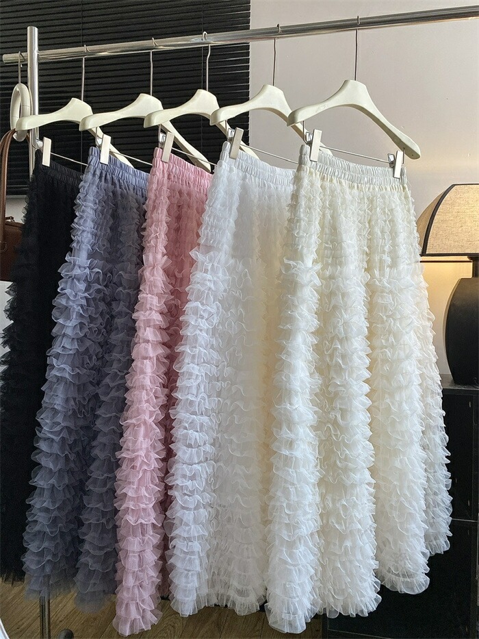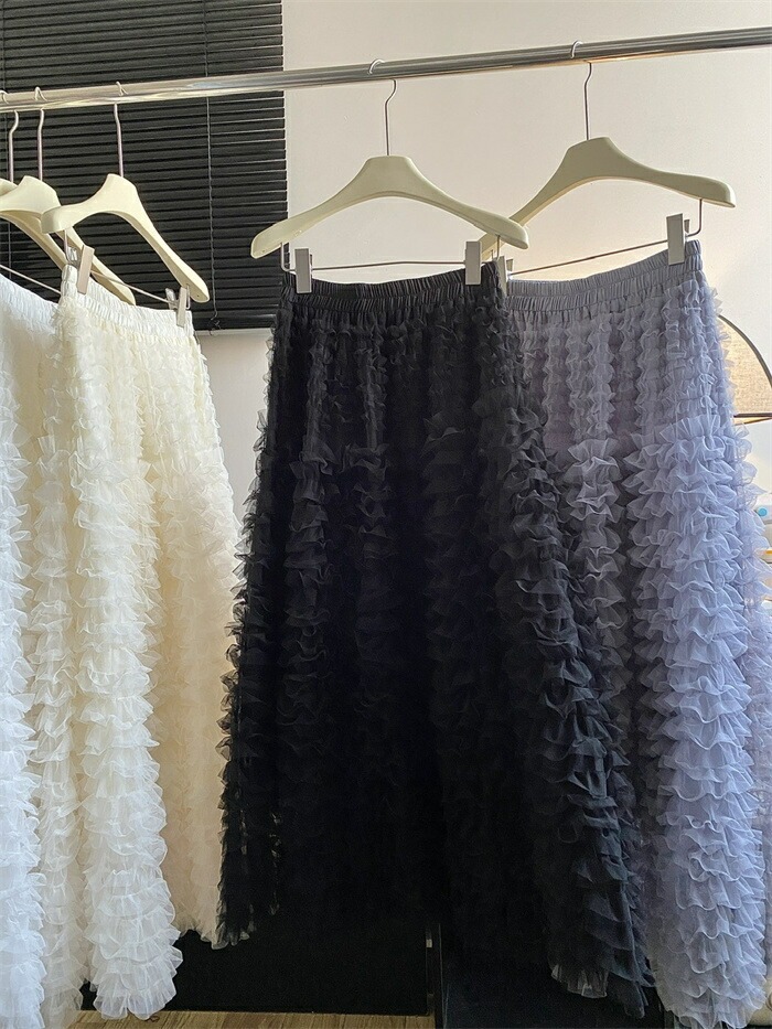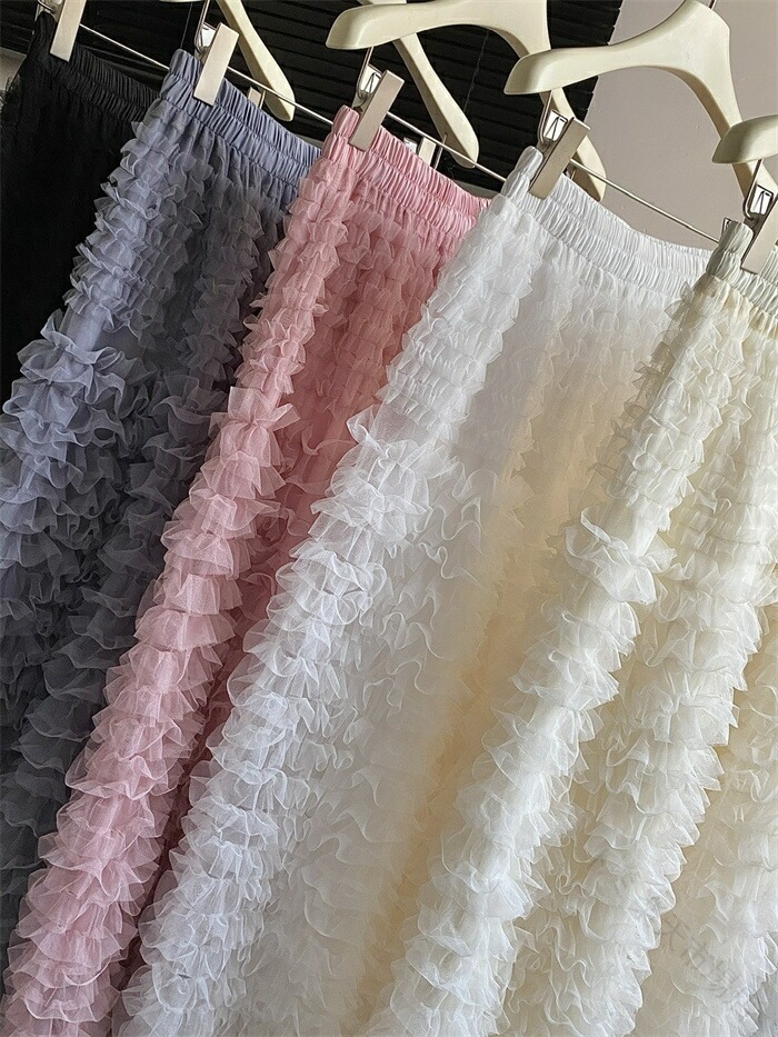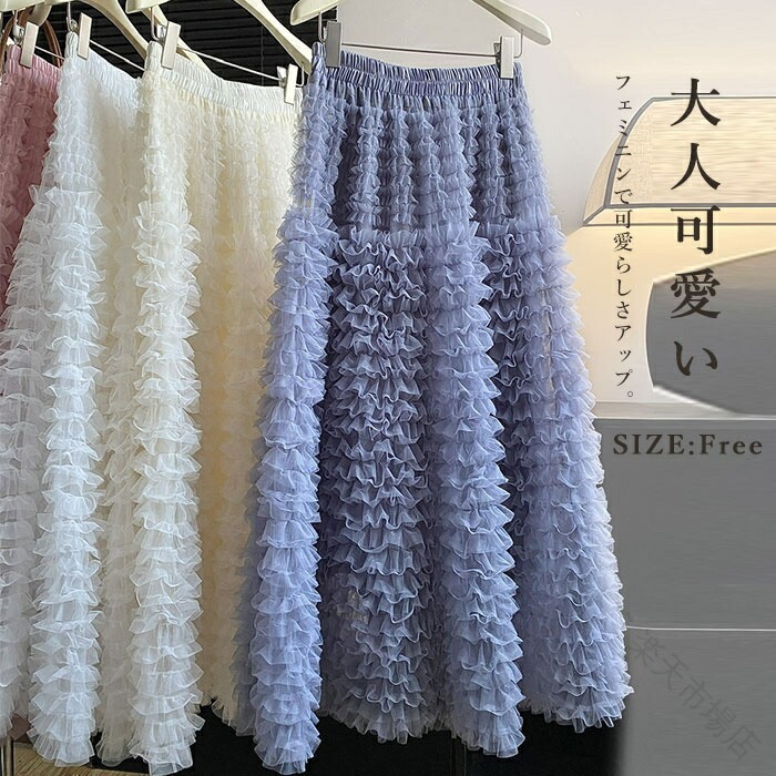 チュールスカート ボリュームチュールロ ボトムス スカート 人気 ブラック ホワイト ベージュ ピンク グレー