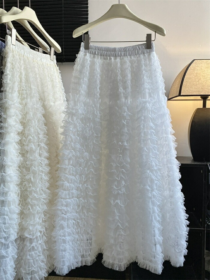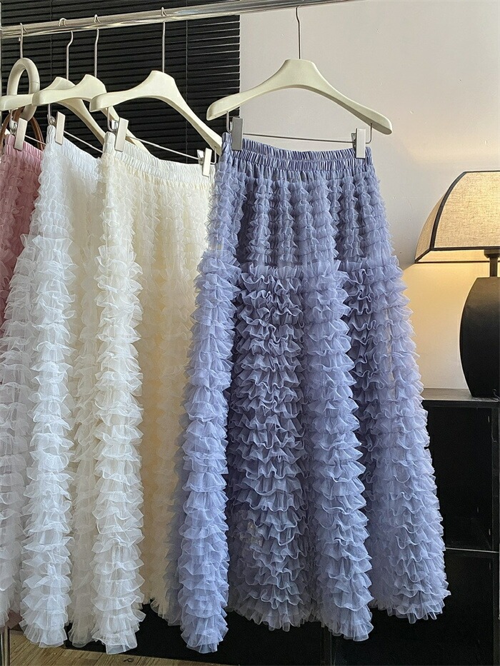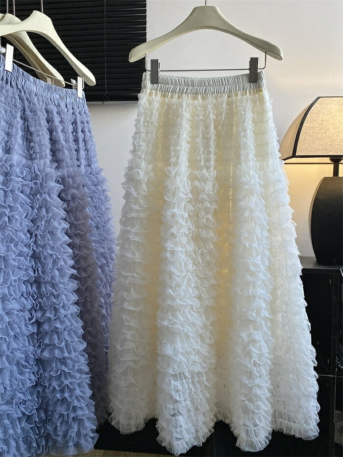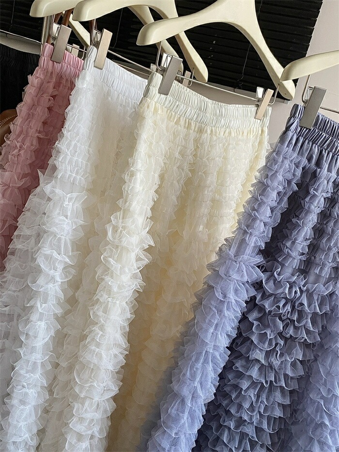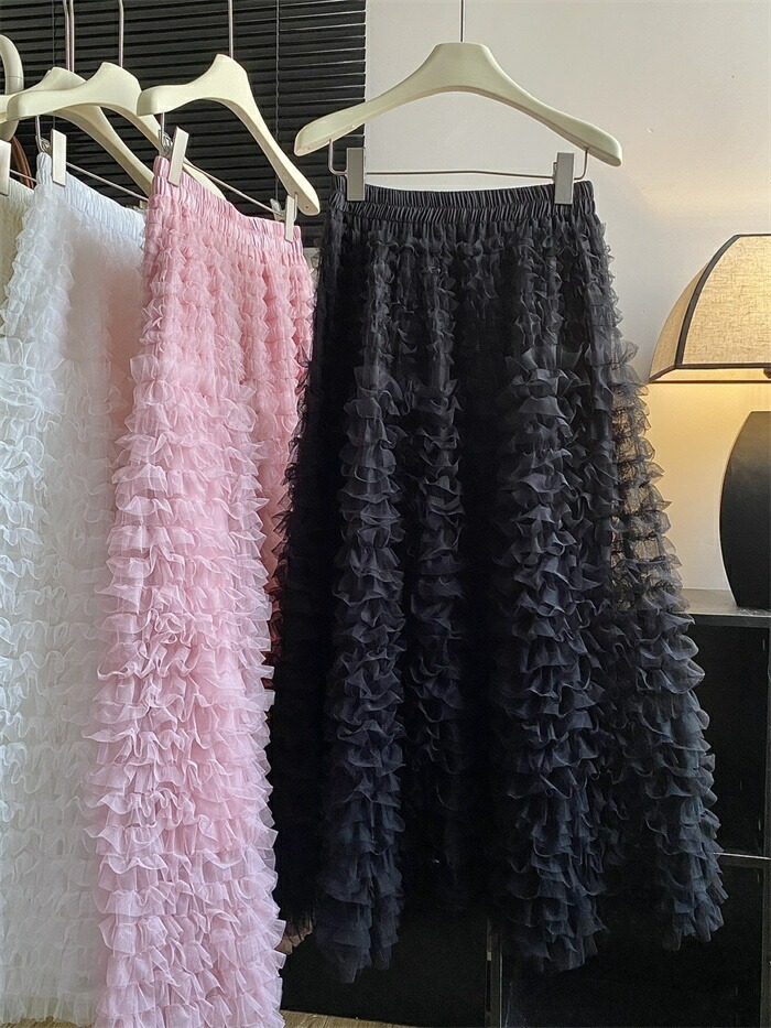 チュールスカート ボリュームチュールロ ボトムス スカート 人気 ブラック ホワイト ベージュ ピンク グレー
