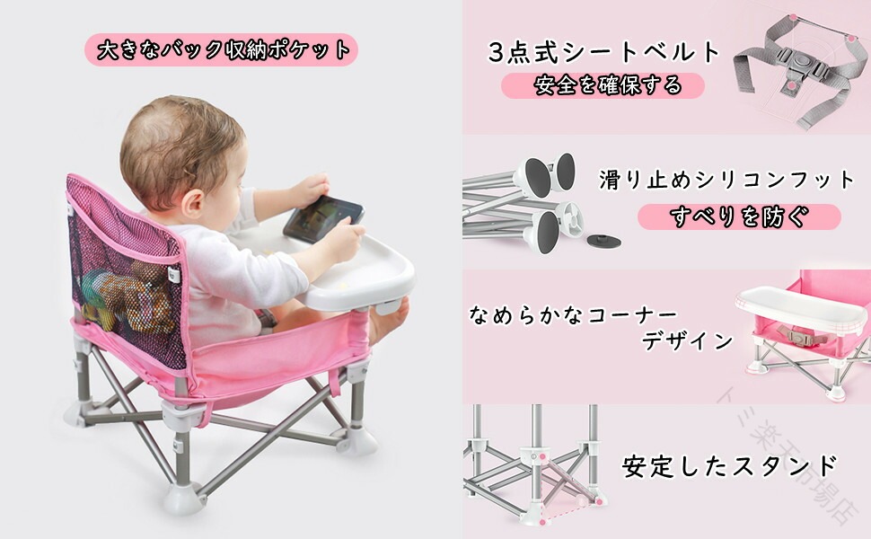 ベビーチェア 折りたたみ テーブルチェ グレー グリーン ピンク