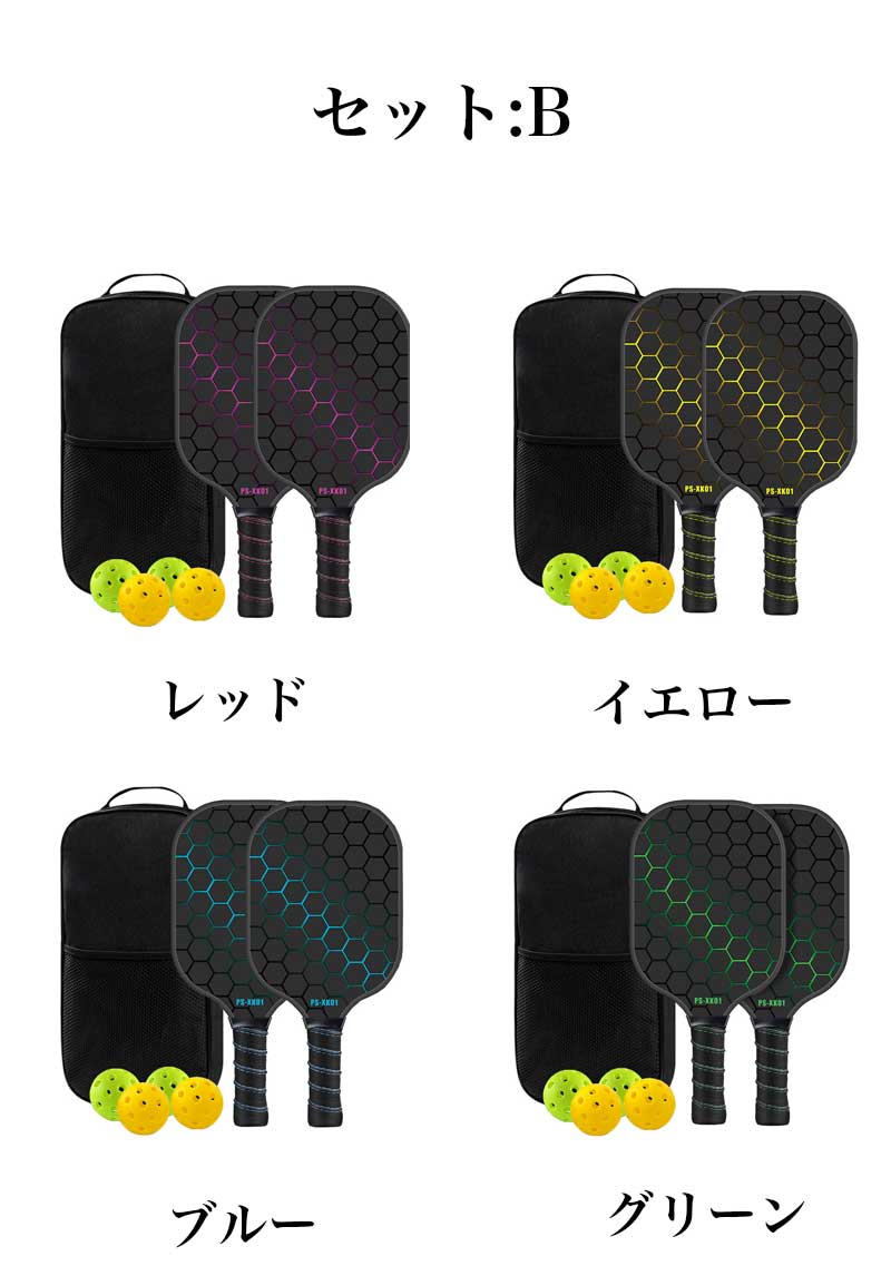 ピックルボール パドル セット 軽量 スカッシュ ラケット 人気 ブルー ピンク イエロー グリーン セット:A セット:B
