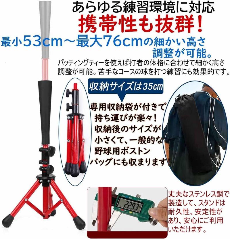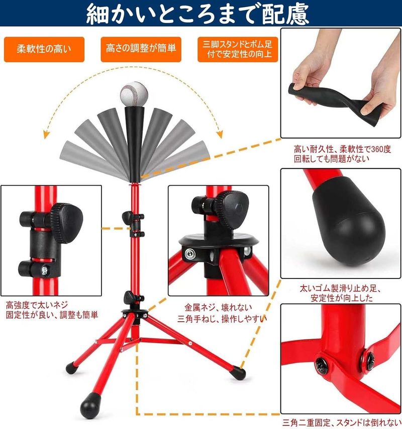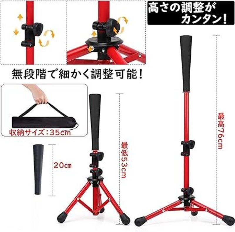 バッティングティー 子供 野球 高さ5 ブラック オレンジ レッド 子供用 大人用