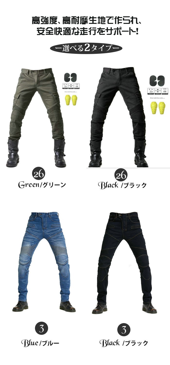 ライダー パンツ バイクパンツ プロテ 26グリーン 26ブラック 3ブルー 3ブラック XS S M L XL 2XL 3XL