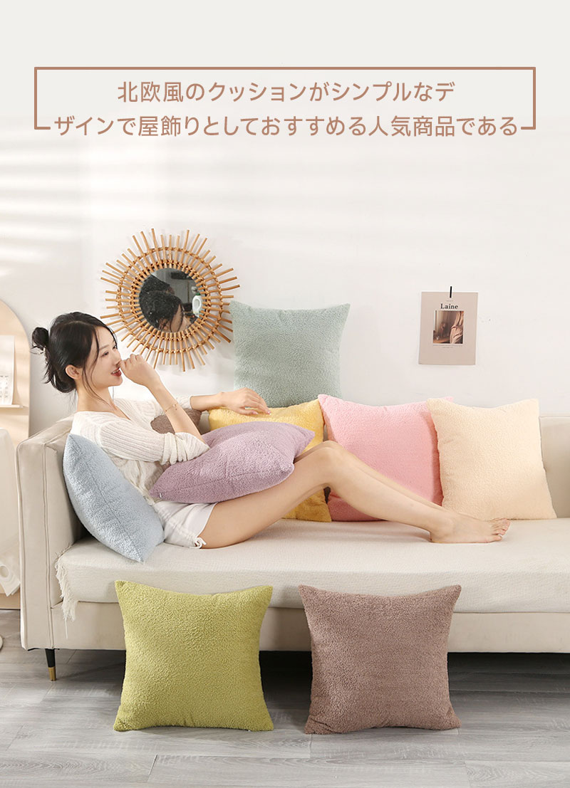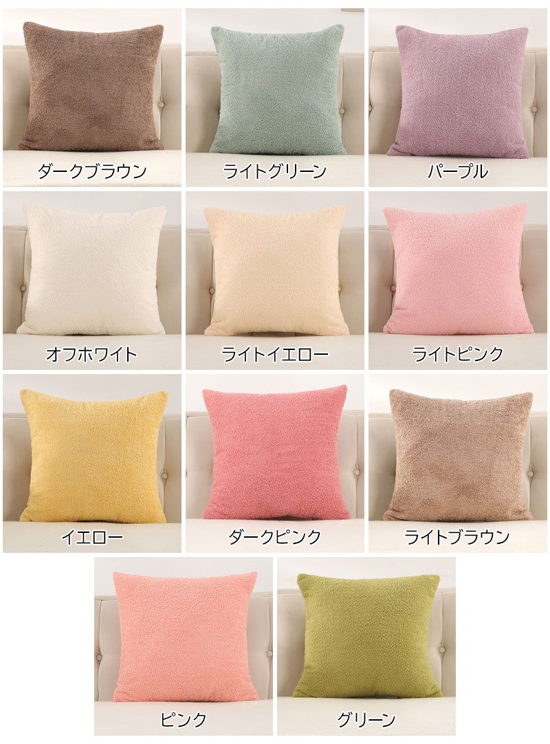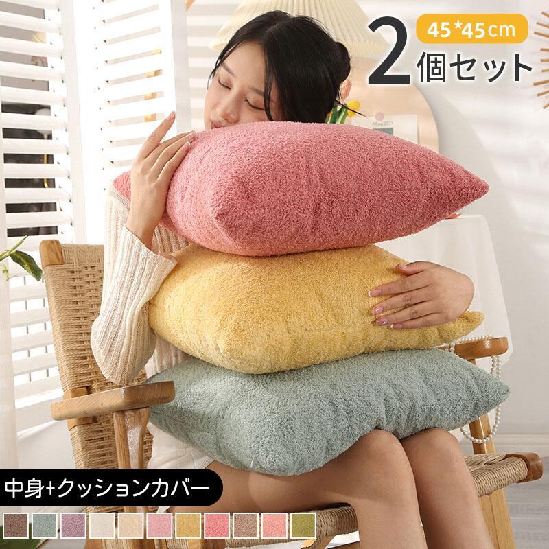 2個セット クッション ふわふわクッシ ダークブラウン ライトグリーン パープル オフホワイト ライトイエロー ライトピンク イエロー ダークピンク ライトブラウン ピンク グリーン