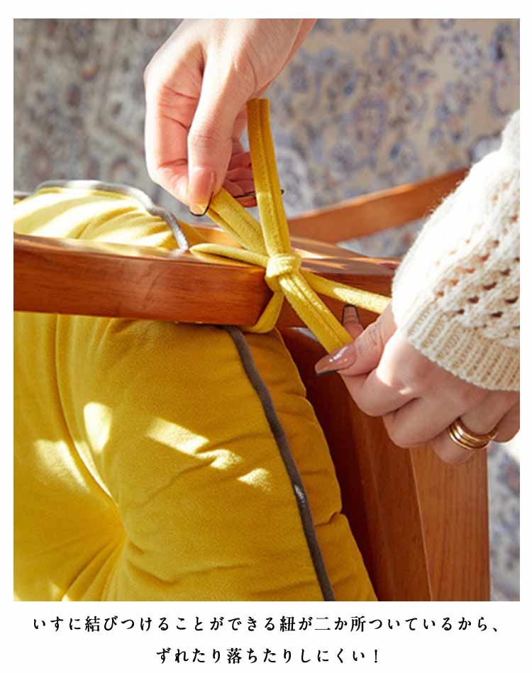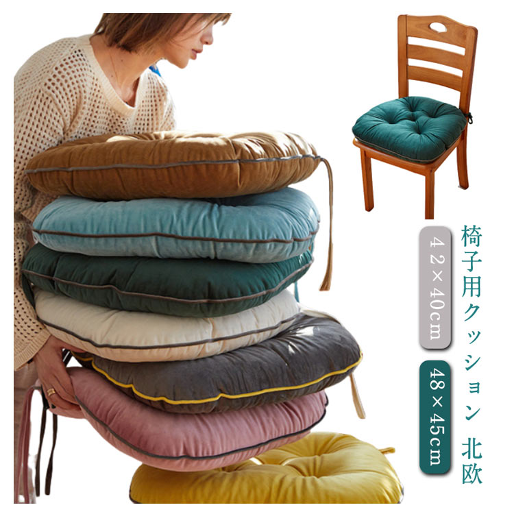 座面 紐付き チェアパッド イス ダイ ダークベージュ ブルー グリーン ホワイト ダークグレー ピンク イエロー 42×40cm 48×45cm