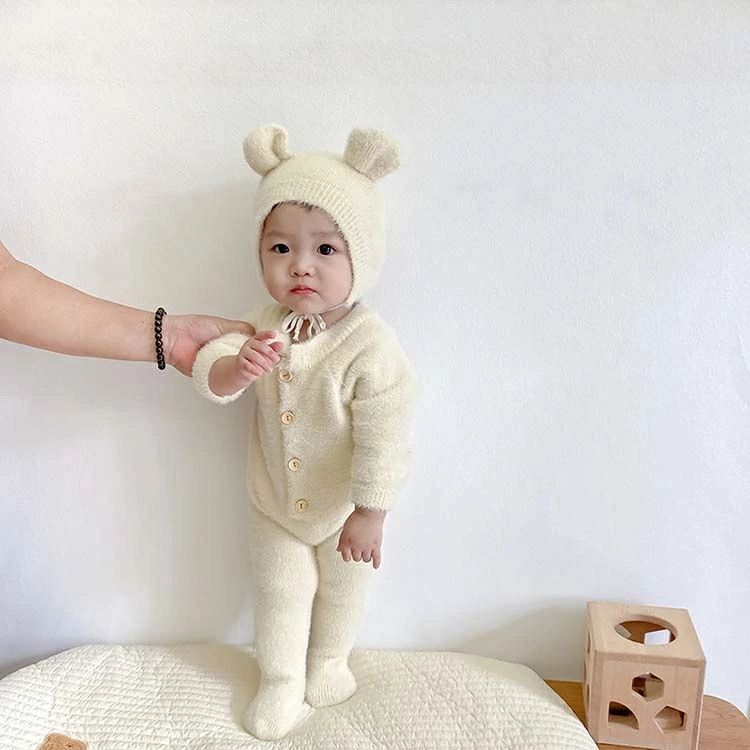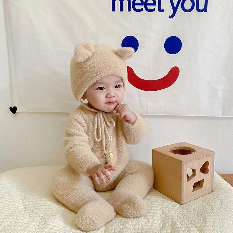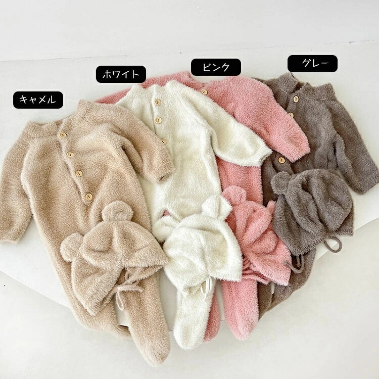 くまちゃん 着ぐるみ 熊耳 ロンパース キッズ ベビー マタニティ 通販 ホワイト ピンク グレー 66 73 80 90 100