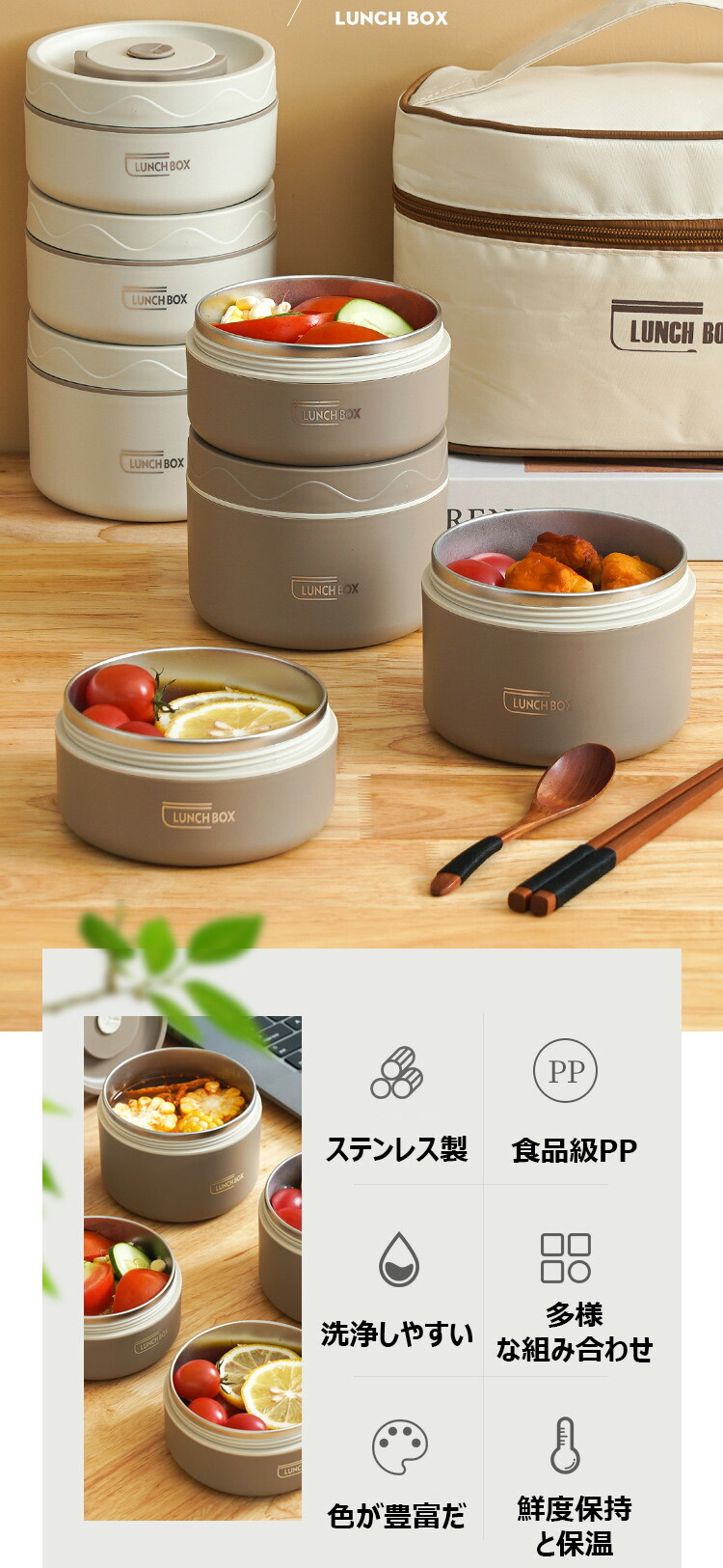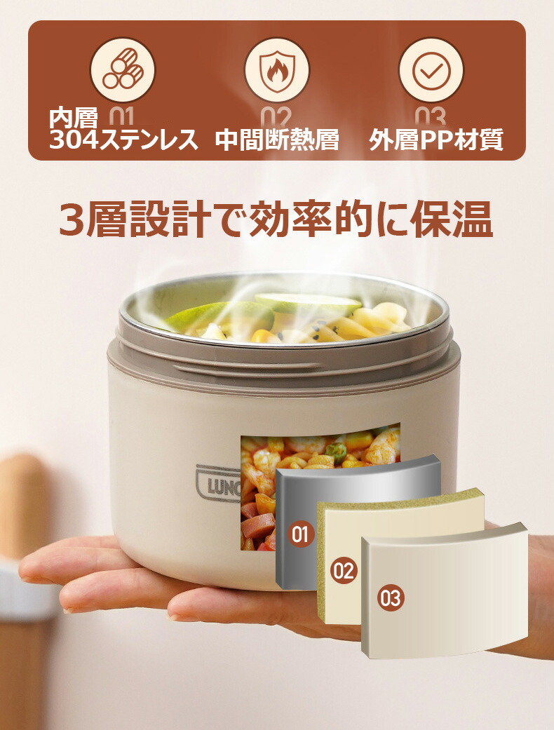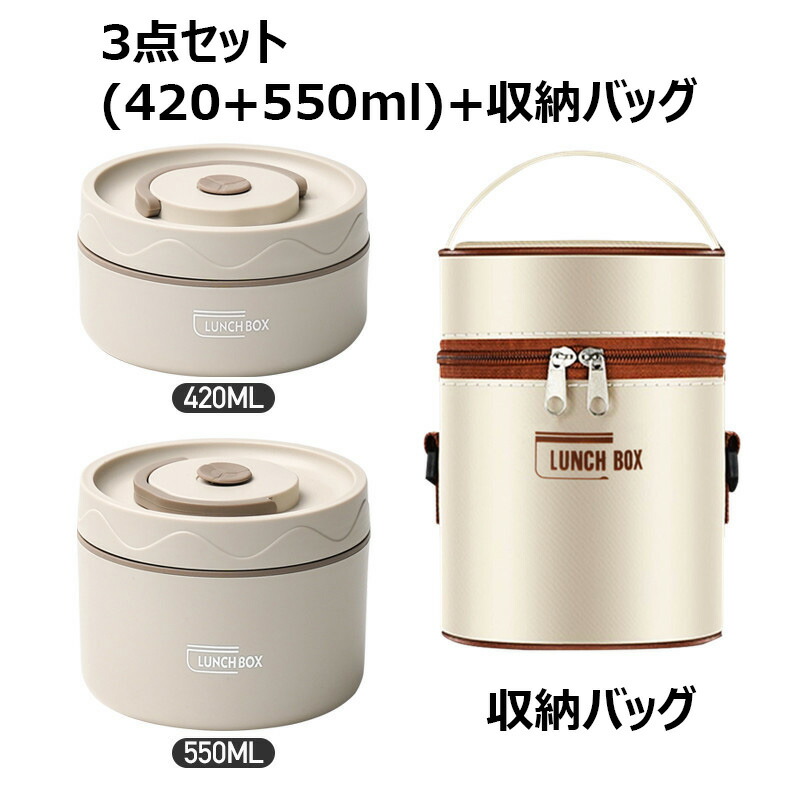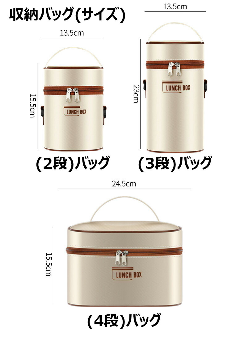 保温弁当箱 保温バッグ付き 断熱弁当箱 キッチン用品 食器 調理器具 人気 ベージュ ブラウン ブルー 2段(3点セット) 3段(4点セット) 4段(5点セット)