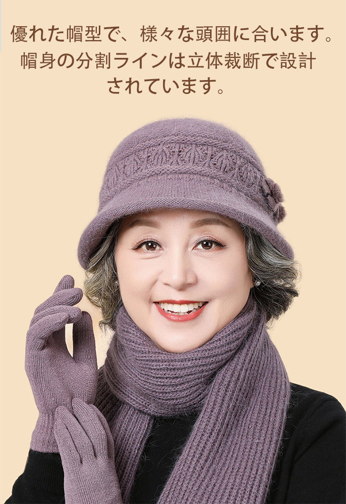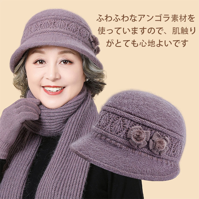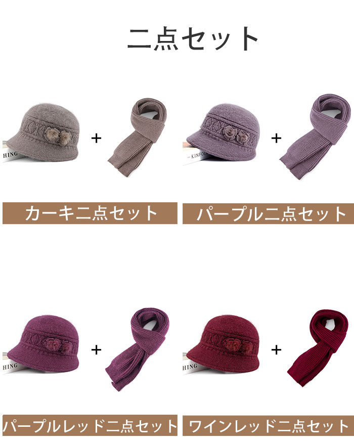 おばあちゃん ニット帽 レディース 帽 帽子 レディース帽子 ニット帽 特集 パープル カーキ パープルレッド グレー ワインレッド ピンク カーキ二点セット パープル二点セット パープルレッド二点セット ワインレッド二点セット
