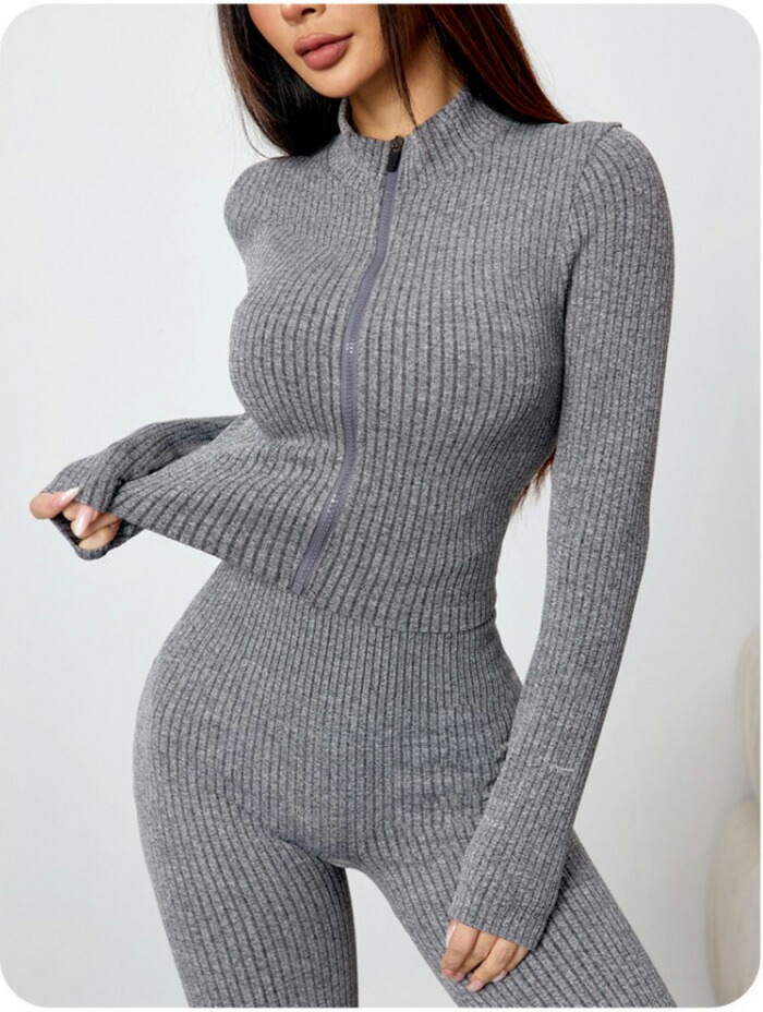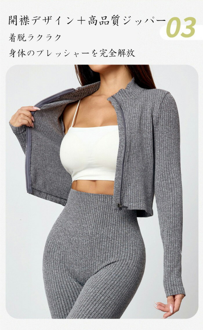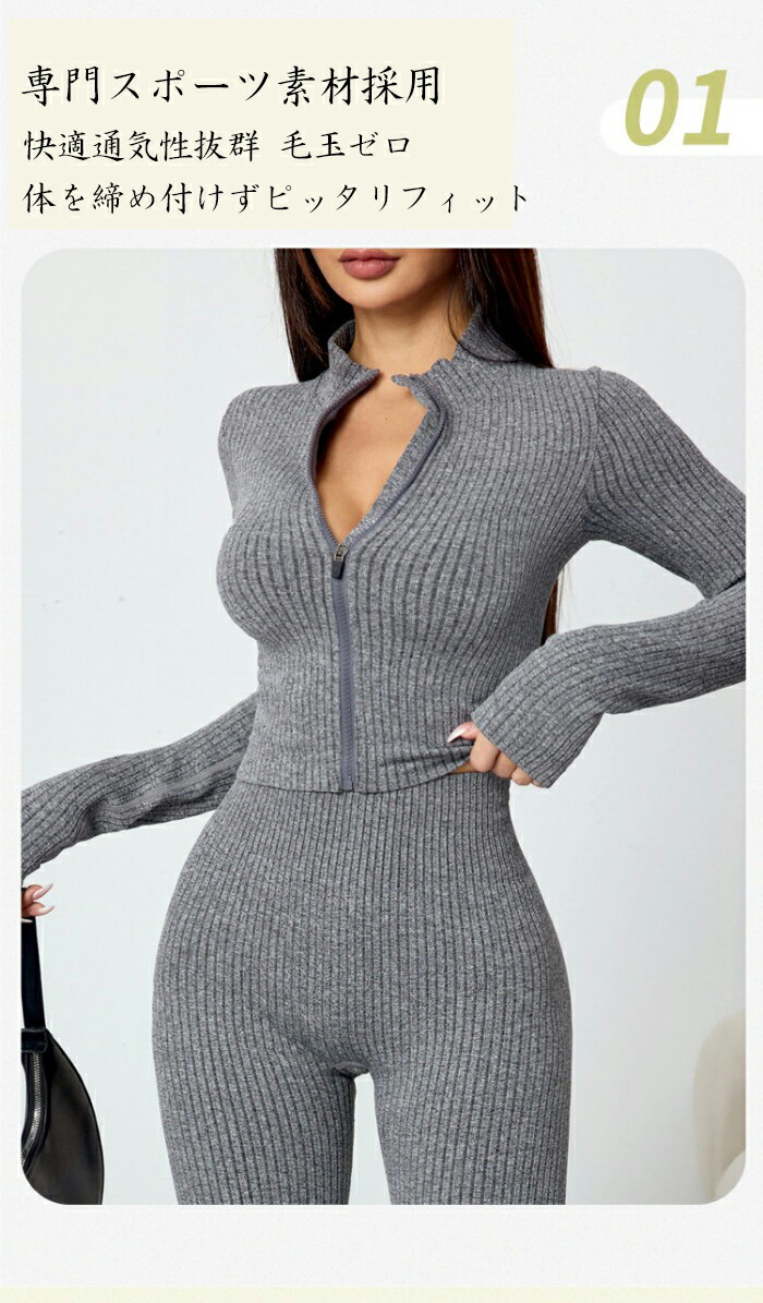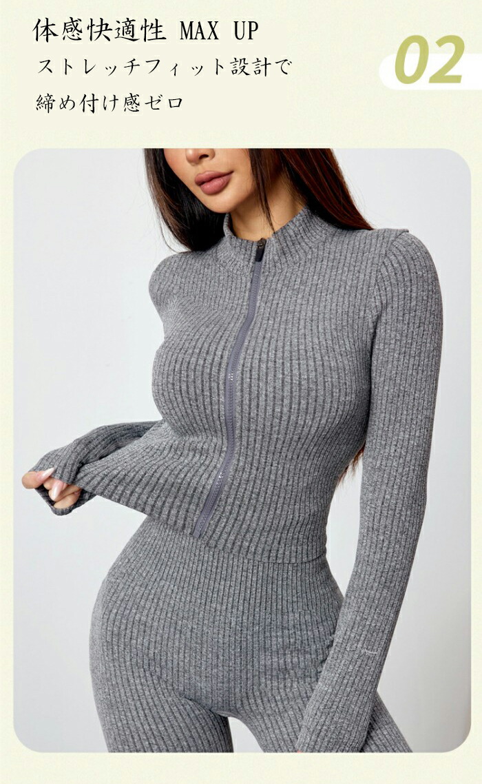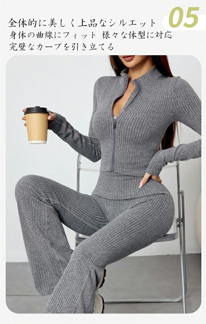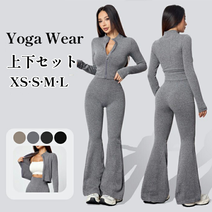 セットアップ レディース 秋冬 長袖 ヨガ ピラティス ウェア その他 特集 グレー ベージュ ダークグレー ブラック S M L