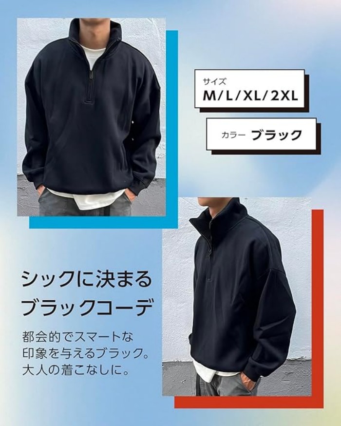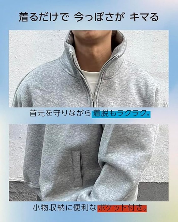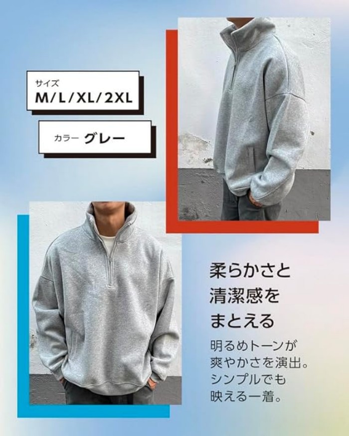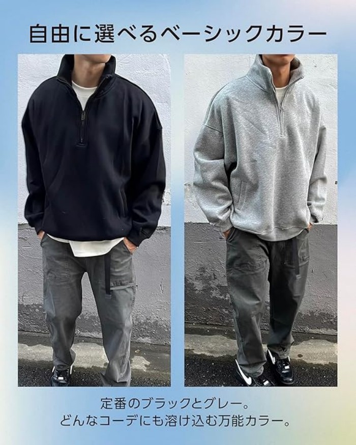 トップス スウェット メンズ ハーフジ メンズファッション 早い者勝ち グレー ブラック M L XL 2XL 3XL