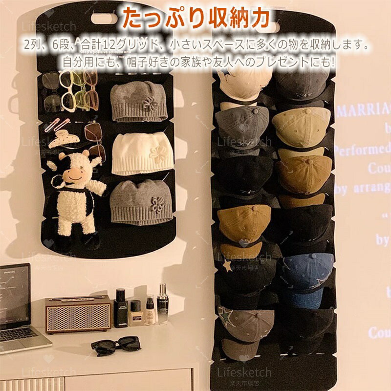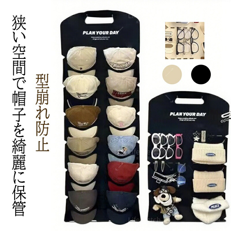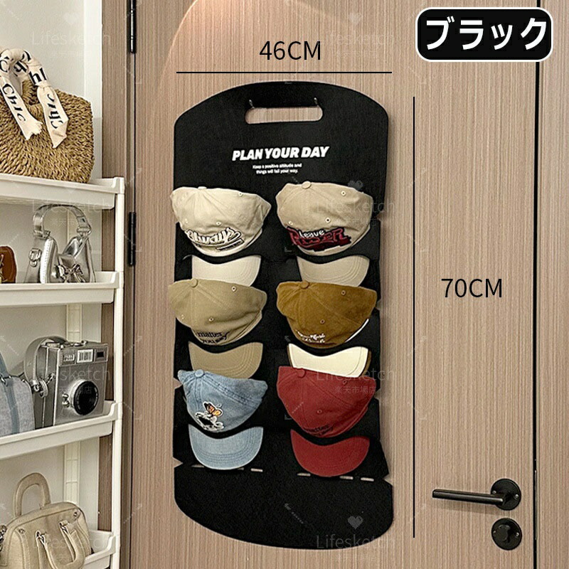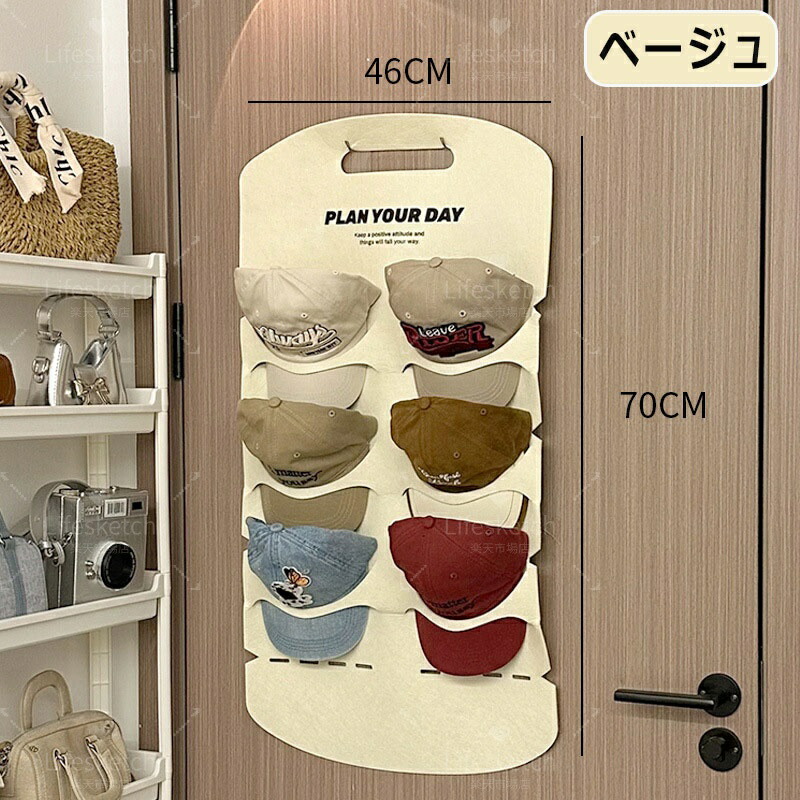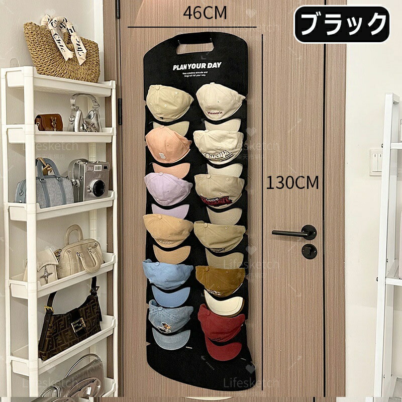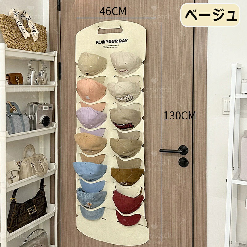 キャップラック 帽子ラック 帽子収納 ブラック ベージュ 46cm×70cm 46cm×130cm
