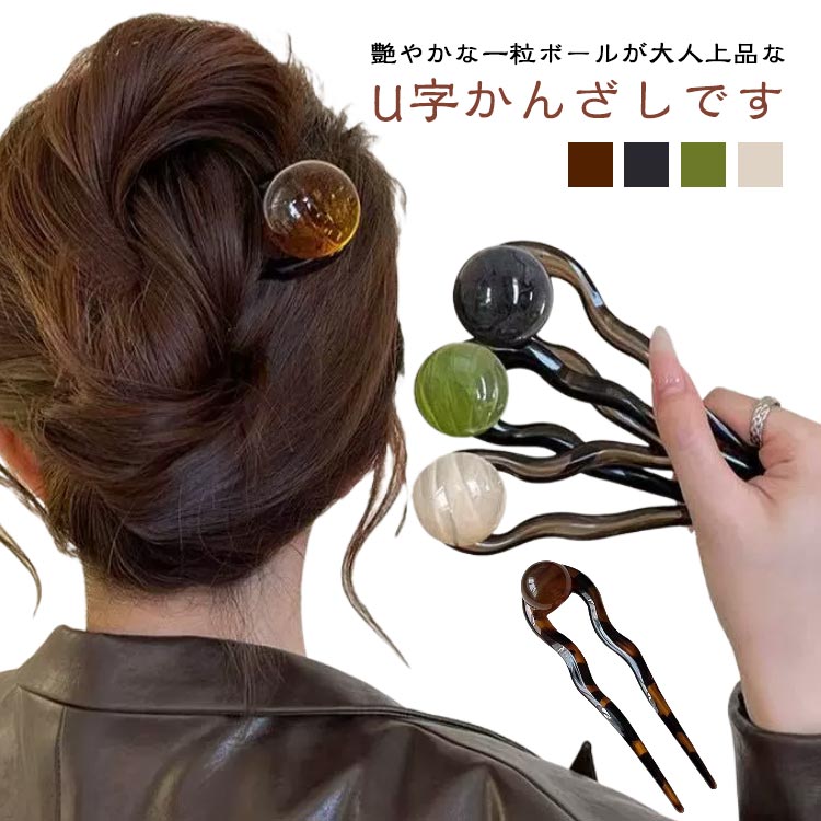 かんざし 簪 U字コーム 普段使い 髪 ジュエリー アクセサリー 新登場! キャメル グリーン アイボリー グレー