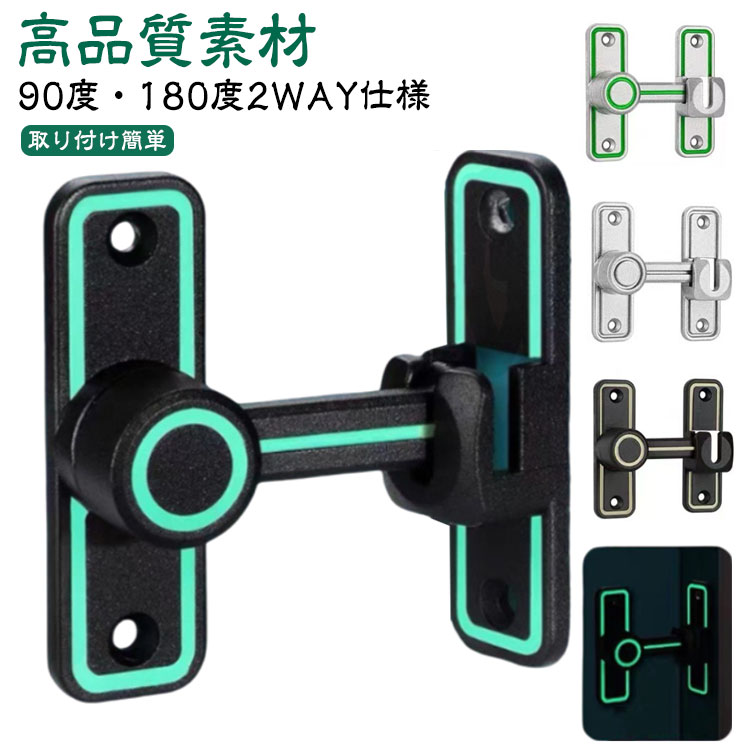 ドアロック 後付け 引き戸 鍵 90度 180度 兼用 穴あけ不要 取り付け簡単 ドアバックル 亜鉛合金 ドア留め金ロック 回転式 フリップラッチロック 夜光 スライディングドア 部屋 窓 玄関 防犯