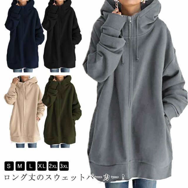 ジップアップパーカー スウェット フー レディースファッション 続々入荷中 グレー ネイビー ブラック ベージュ カーキ S M L XL 2XL 3XL