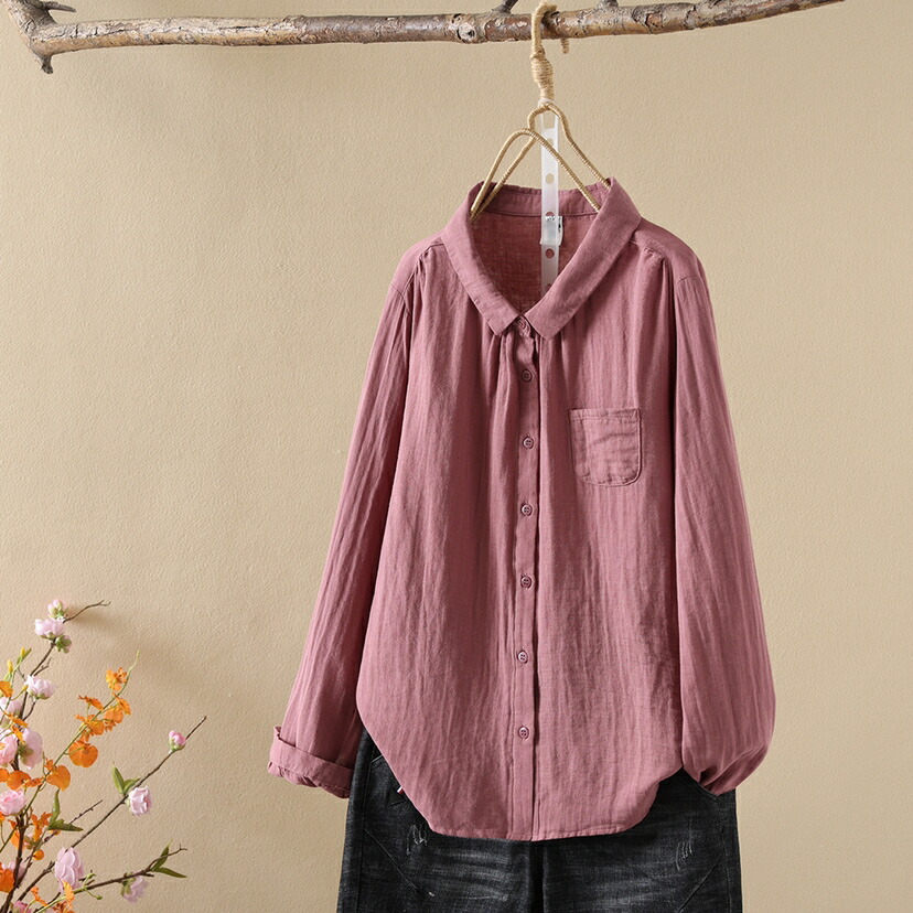 ガーゼシャツ レディース 長袖 半袖 トップス シャツ ブラウス 新登場! 白(半袖) 黒グレー(半袖) ピンクパープル(半袖) グレー緑(半袖) ブルー(半袖) ダークピンク(半袖) カーキキャメル(半袖) 白(長袖) ブルー(長袖) グレー緑(長袖) 紺色(長袖) ダーク緑(長袖) 赤(長袖) ダークピンク(長袖) カーキキャメル(長袖) M L