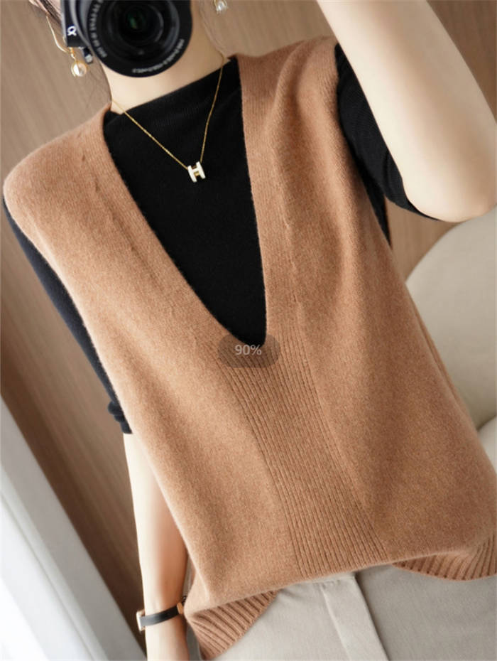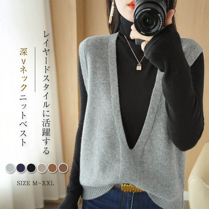 深Vネック ニット ベスト vネック トップス ベスト 豊富 黒 グレー ベージュ 紺色 ブラウン ダークラクダ色 M L XL XXL