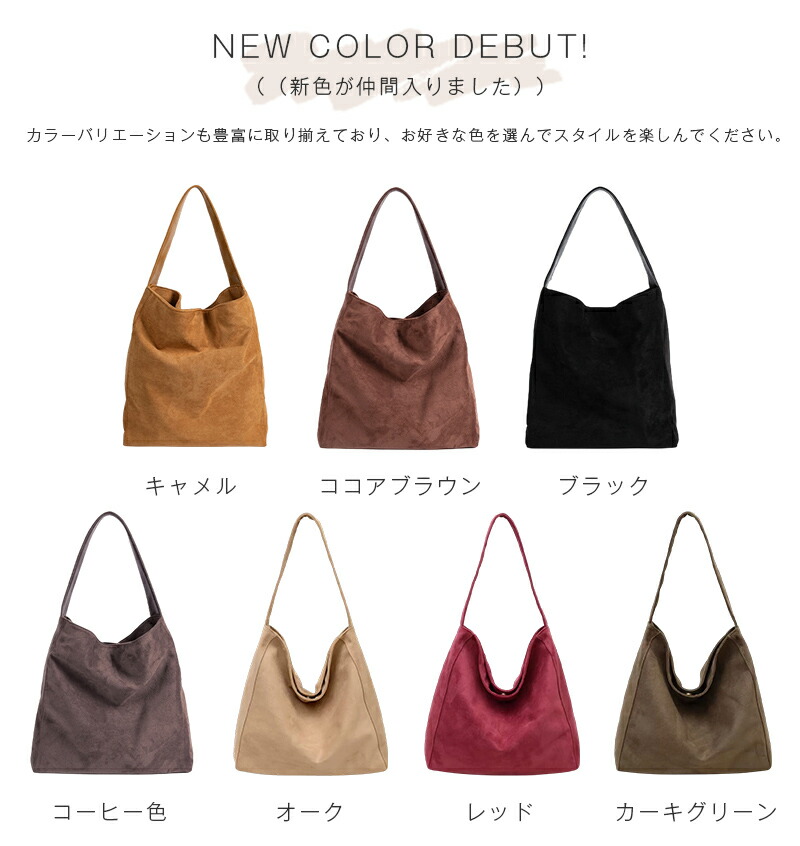 7色 スエード バッグ トートバッグ バッグ 小物 ブランド雑貨 続々登場 キャメル ブラック コーヒー色 カーキグリーン オーク カカオブラウン レッド