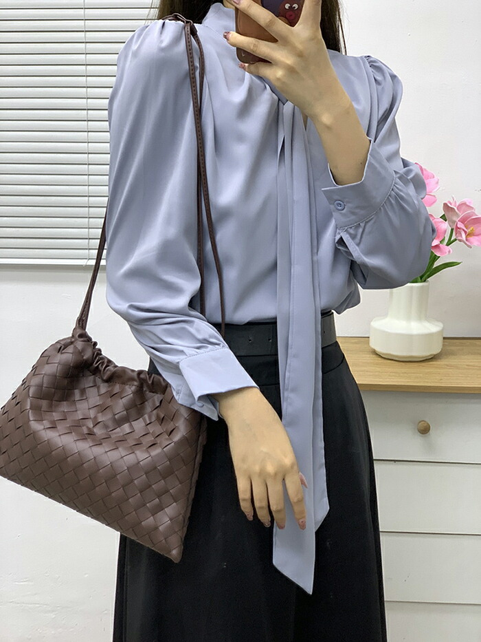 シアースリーブ ドッキングシャツ ボウタイシャツブラウス