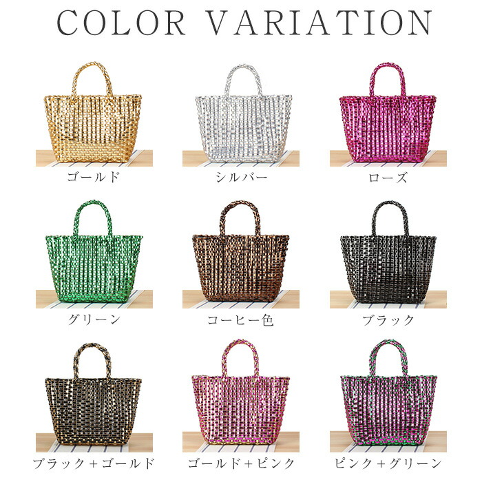 編みバッグ ハンドバッグ レディース バッグ レディースバッグ ハンドバッグ 通販 ゴールド シルバー ローズ グリーン コーヒー色 ブラック ブラック+ゴールド ゴールド+ピンク ピンク+グリーン