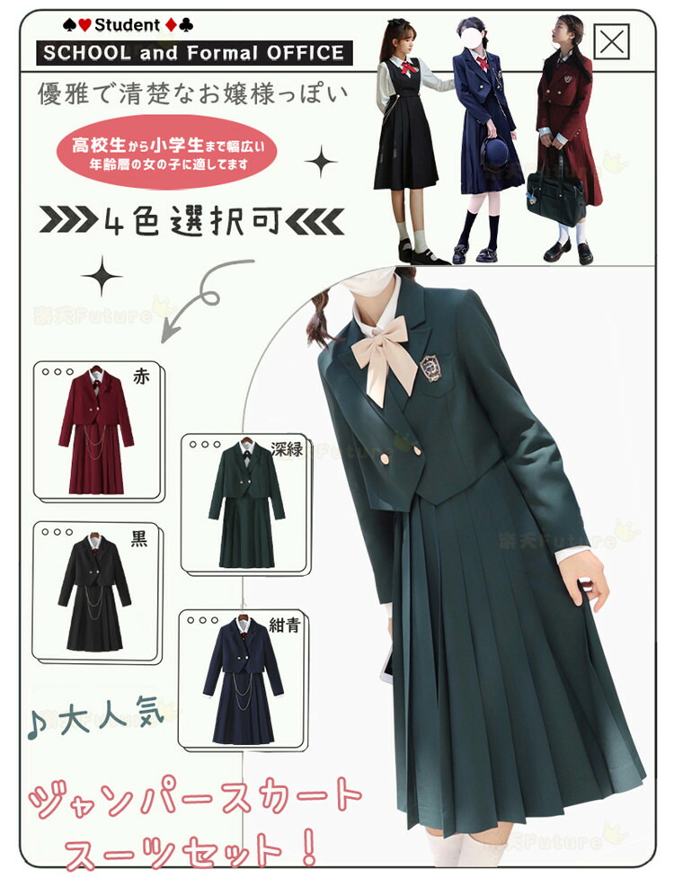 卒業式 スーツ 女の子 卒服 制服 ジ キッズ スーツ カジュアルセットアップ スーツ 早い者勝ち 紺青3点セット(スカート丈65cm) 黒3点セット(スカート丈65cm) 赤3点セット(スカート丈65cm) 深緑3点セット(スカート丈65cm) 紺青3点セット(スカート丈80cm) 黒3点セット(スカート丈80cm) 赤3点セット(スカート丈80cm) 深緑3点セット(スカート丈80cm) XS S M L XL 2XL