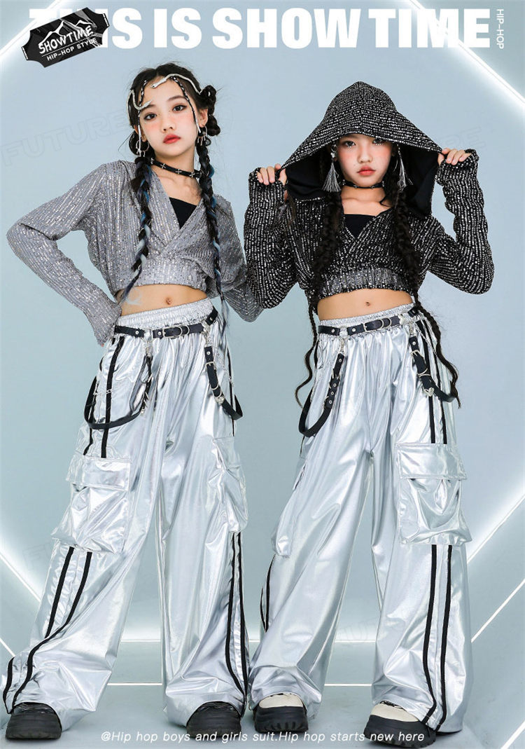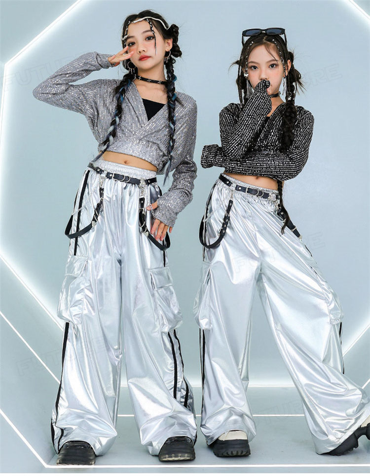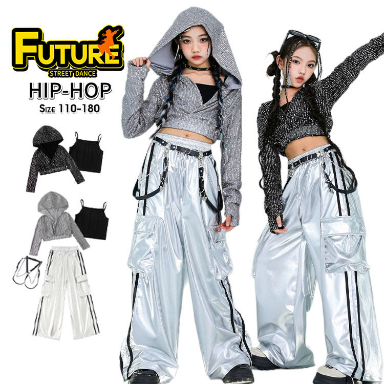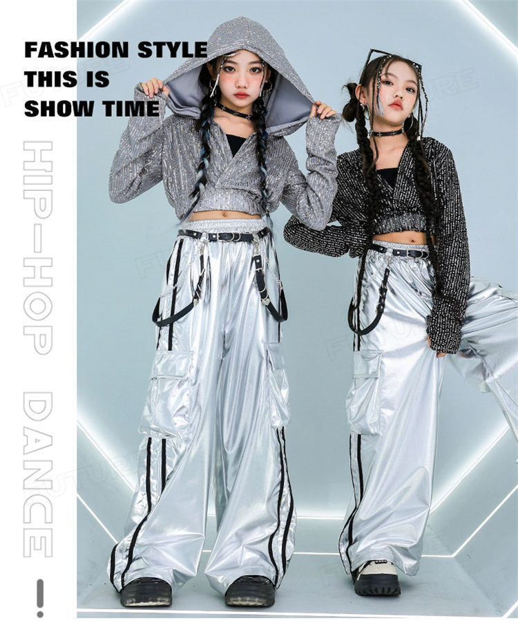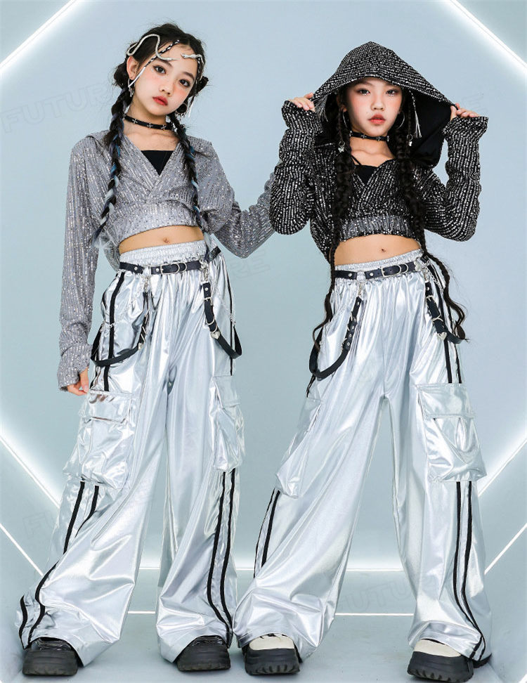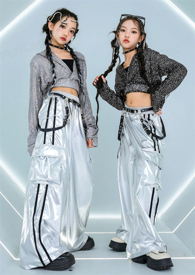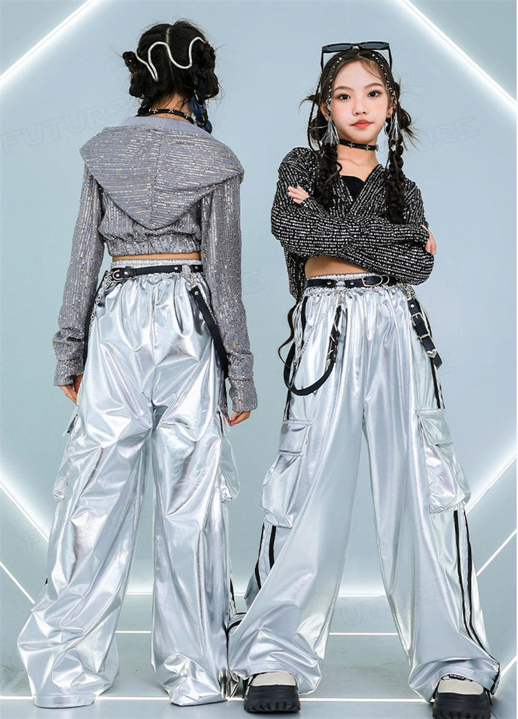 k-pop 衣装 シルバー キラキラ スポーツ アウトドア 人気 タンクトップ グレーコート ブラックコート 長パンツ グレー2点セット グレー3点セット ブラック2点セット ブラック3点セット 110cm 120cm 130cm 140cm 150cm 160cm 170cm 180cm