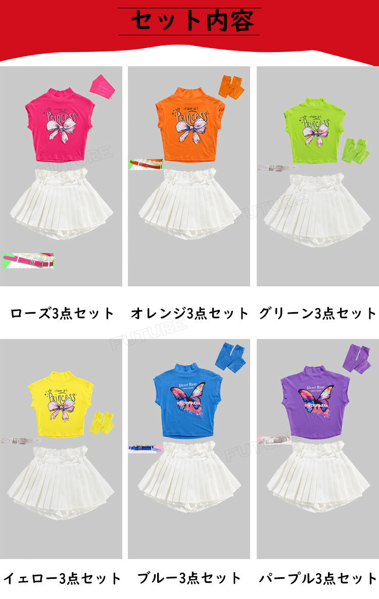 キッズ へそ出し トップス ダンス衣装 体操 ダンス 社交ダンス ウェア 通販 ローズtシャツ イェローtシャツ オレンジtシャツ グリーンtシャツ ブルーtシャツ パープルtシャツ キュロット(ホワイトベルト付き) キュロット(ローズベルト付き) ローズ3点セット オレンジ3点セット グリーン3点セット イェロー3点セット ブルー3点セット パープル3点セット 110cm 120cm 130cm 140cm 150cm 160cm 170cm